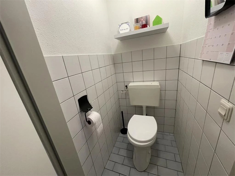 Separaat een toiletruimte. Slaapkamer (4,00 x 3,50m) bevindt zich aan de achterkant van het pand met een raam naar het binnenplaats..