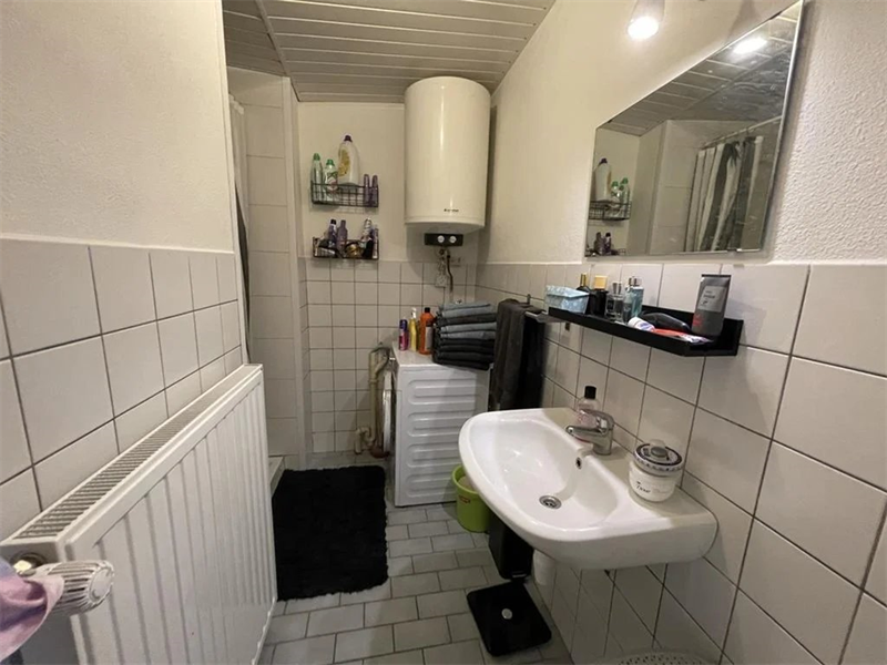 Eerste verdieping: Eigen entree geeft toegang tot alle ruimtes. Aan de voorkant bevindt zich de ruime en gezellige woonkamer (6,80 x 4,20m), voorzien van een open keuken. Voldoende ramen aan de voorkant zorgen voor veel lichtinval. Badkamer met douche, boiler en aansluiting voor wasmachine.
