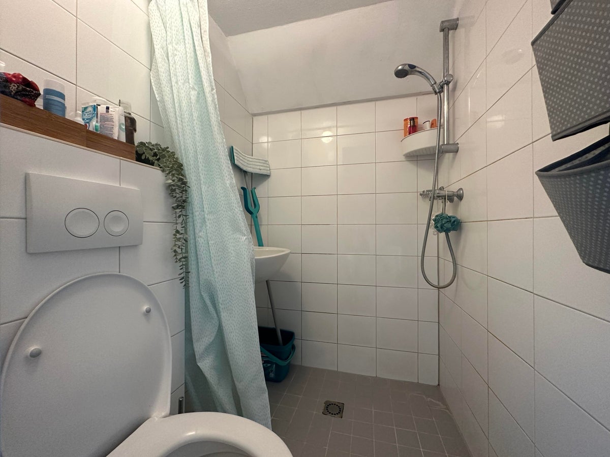 A: Nee, de badkamer is privé en behoort bij de studio. De badkamer ligt buiten de studio-ruimte en is voorzien van wasbak, aparte douche en wasmachine aansluiting.