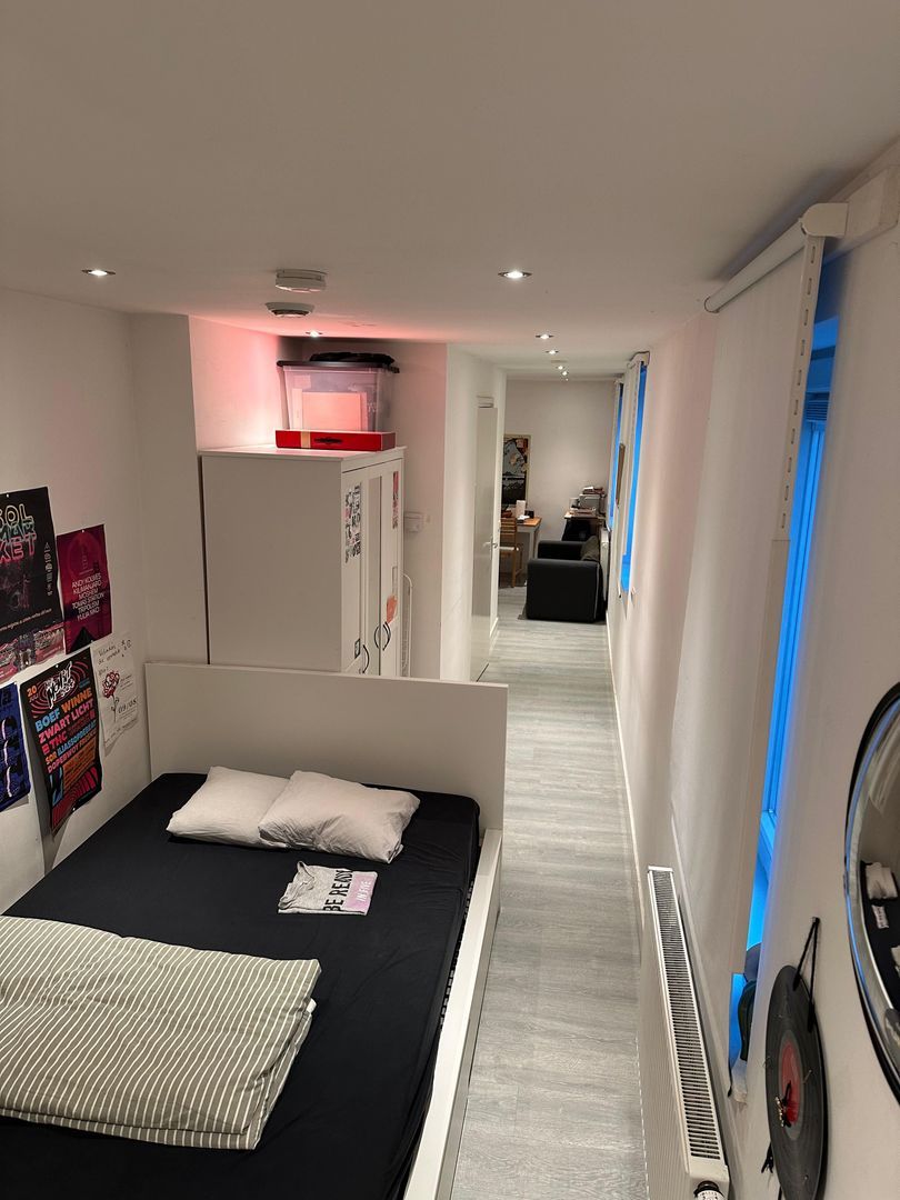 Tevens beschikt deze woonruimte over een eigen badkamer. Deze is voorzien van een wastafel, douche en toilet. Het woongedeelte is opgedeeld in 2 delen. Waardoor je een aparte slaapkamer kan creeeren.
