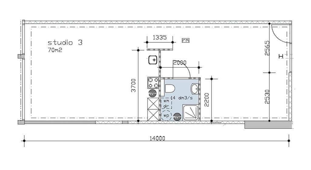 Badkamer, 4,4 m2 (2,2 x 2 m).