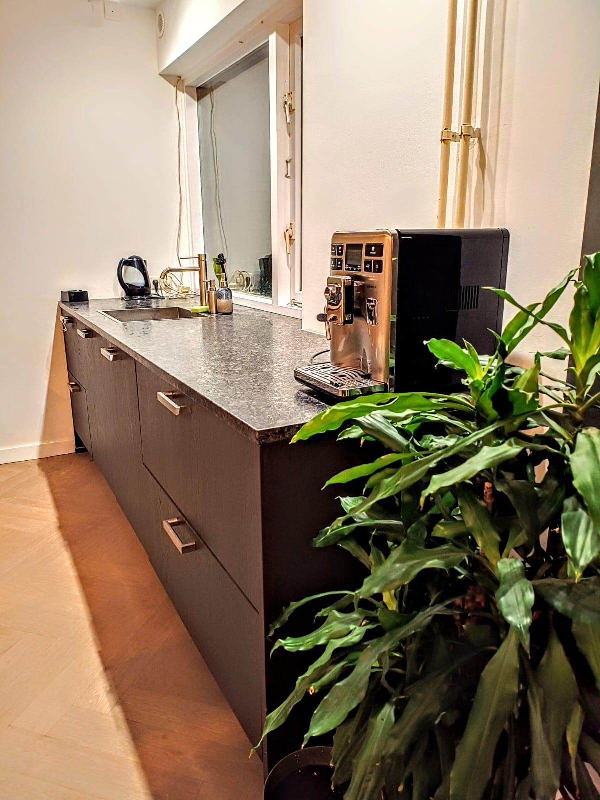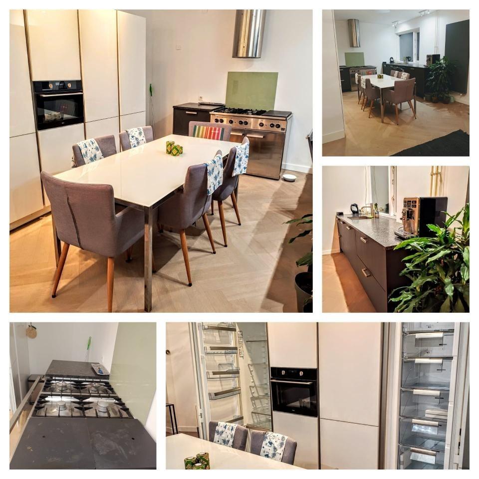 Grote moderne keuken met koelkast, vriezer en vaatwasser