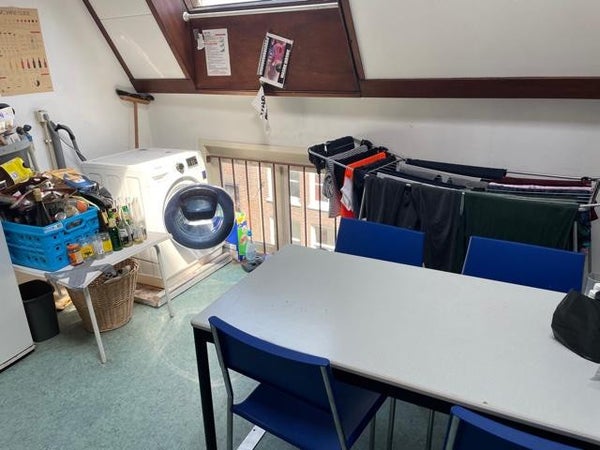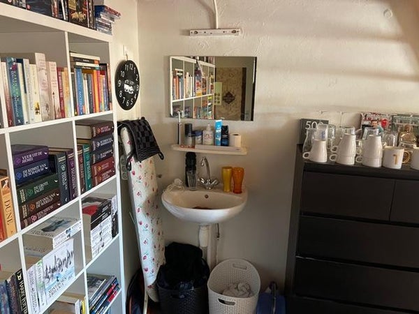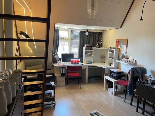 The room is circa 18m2, has its own sink and has a kind of void where you can sleep. In this house live 6 people, but 3 share the kitchen and bathroom/toilet. It is a very spacious room at a great location. All shops are on walking distance.