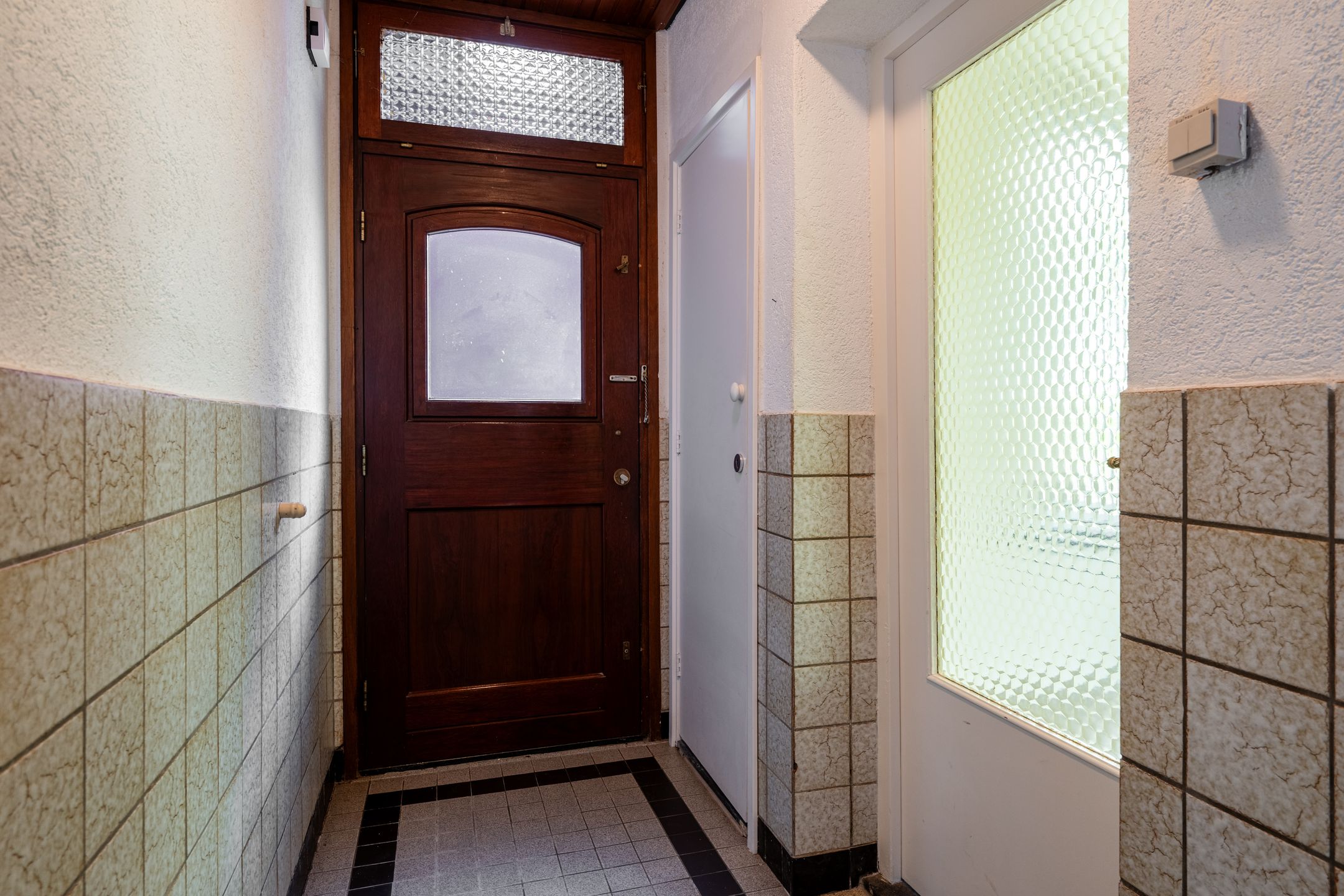 Vanuit de keuken is er toegang tot een royaal portaal waar de trap naar de eerste verdieping is.