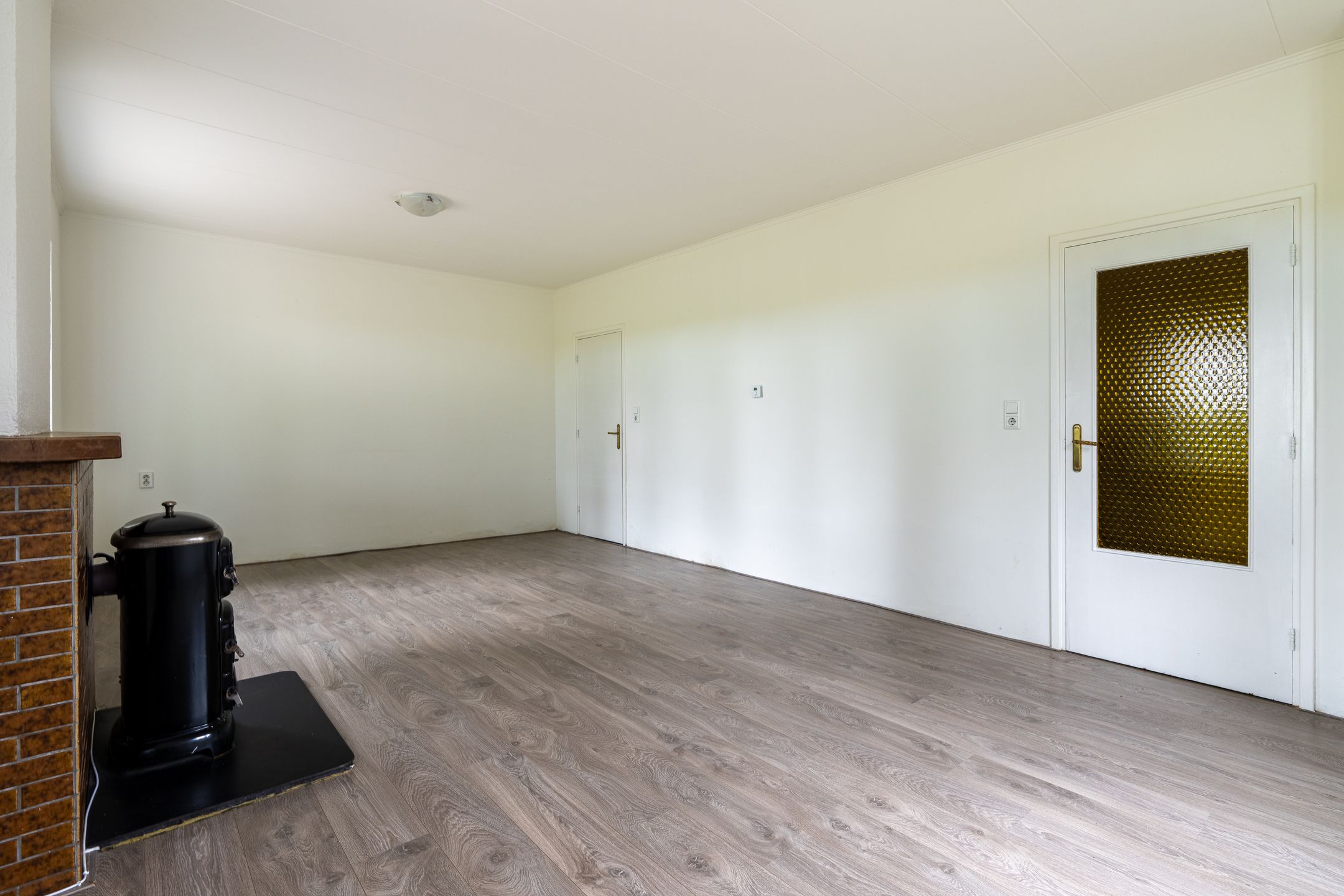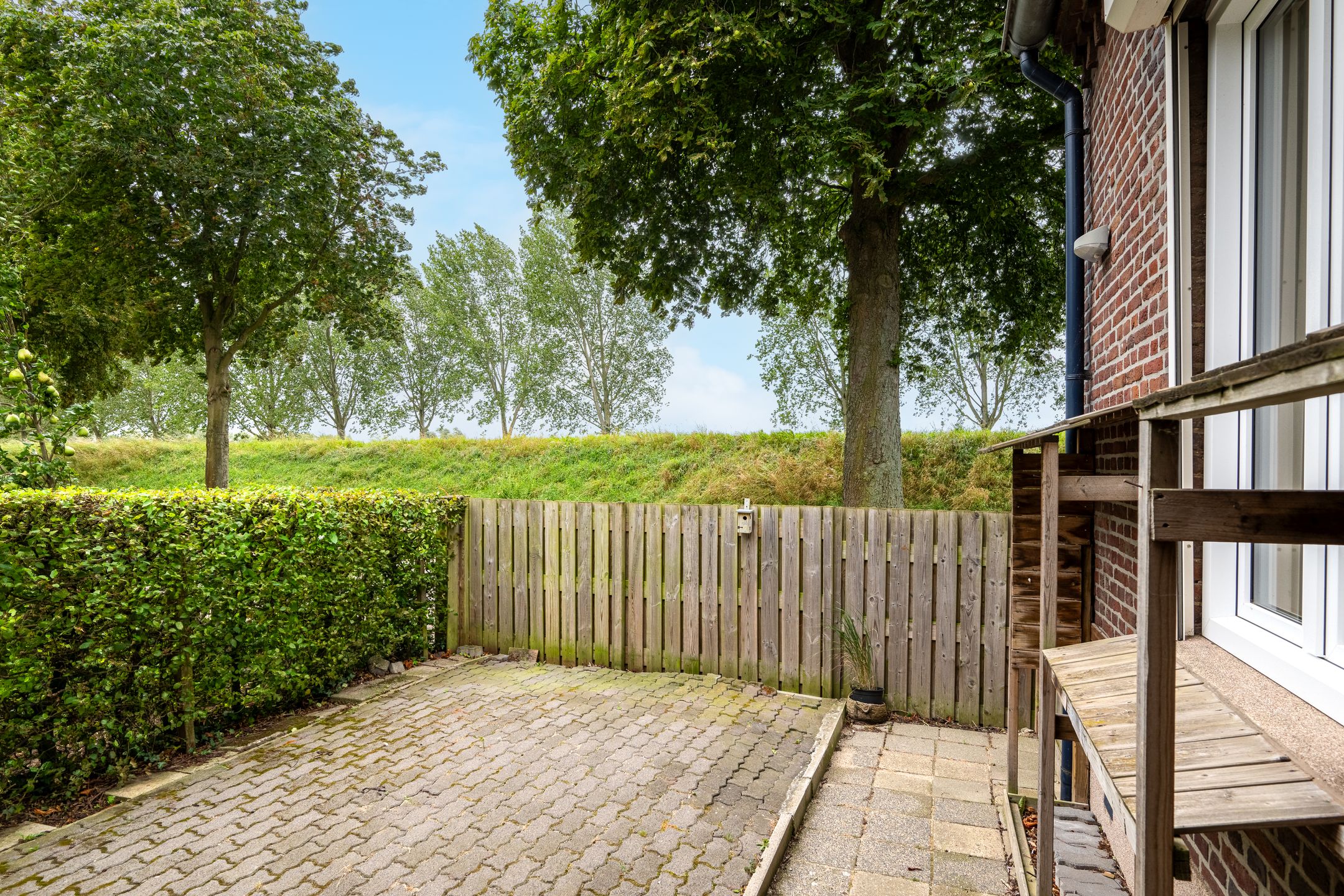 Het huis beschikt alleen over een voortuin, deze is van de straat afgesloten met een houten schutting, zo is er toch een fijn plekje om lekker buiten te zitten. Deze ligt op het zuiden, dus er is in de ochtend en in de middag zon.