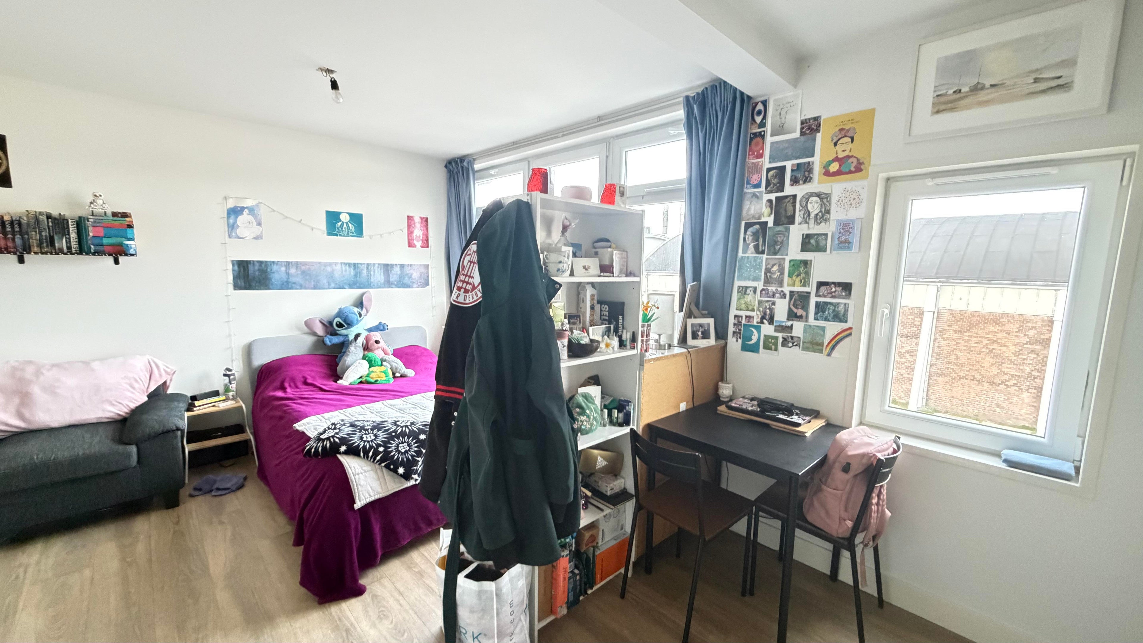 De studio kenmerkt zich door veel lichtinval en een nette afwerking. De woning beschikt over een eigen badkamer, toilet en keuken.