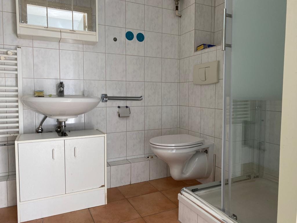 Vanuit de woonkamer is de slaapkamer (ca. m/ 1,6 m*1,55 m) bereikbaar met een aparte badkamer (ca.