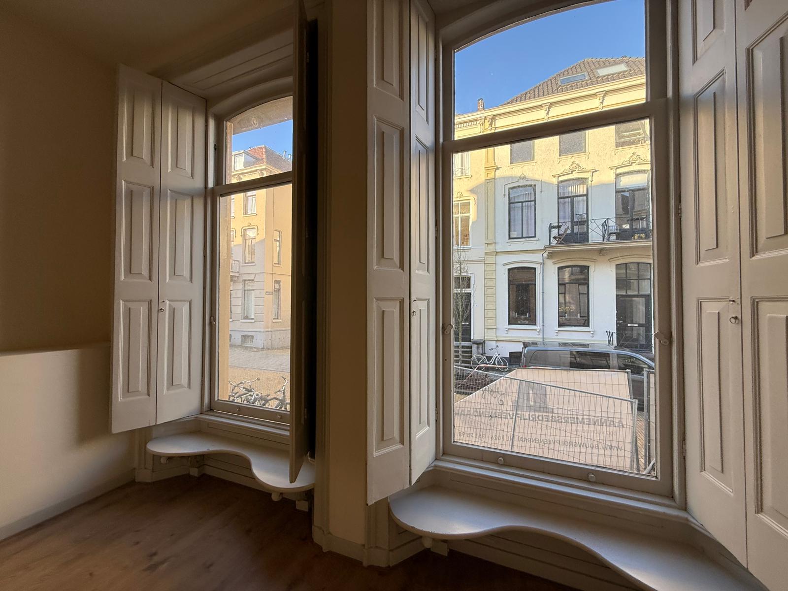 De kamer is opvallend licht dankzij de grote raampartij met uitzicht op de Parkstraat. Door de fijne afmetingen voelt de ruimte ruim en comfortabel aan en is deze perfect in te richten als woon- én slaapruimte.