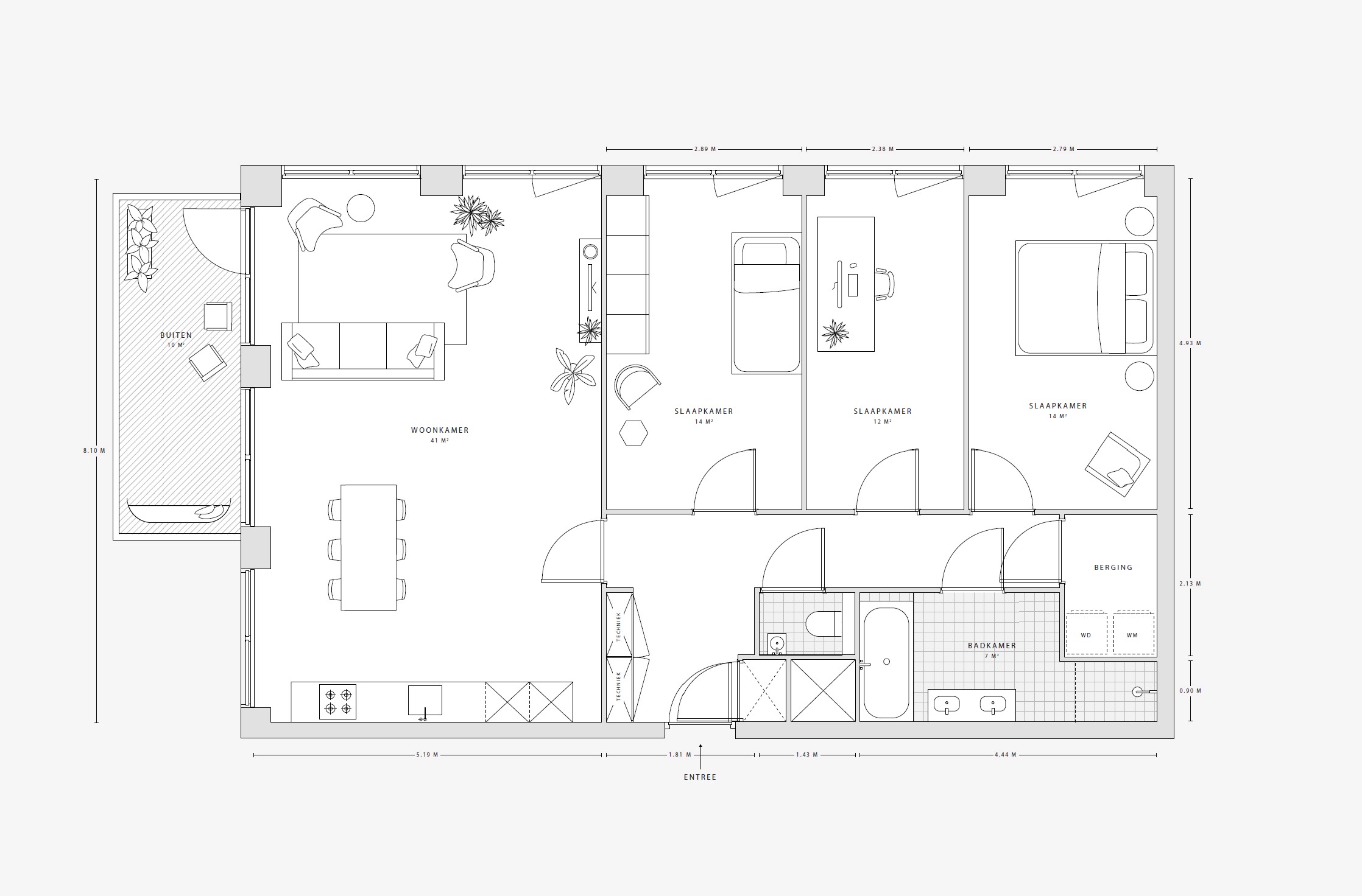 Appartement beschikt over: balkon (west georiënteerd), woonkamer, badkamer, apart WC. De slaapkamers zijn ongeveer 14 m².