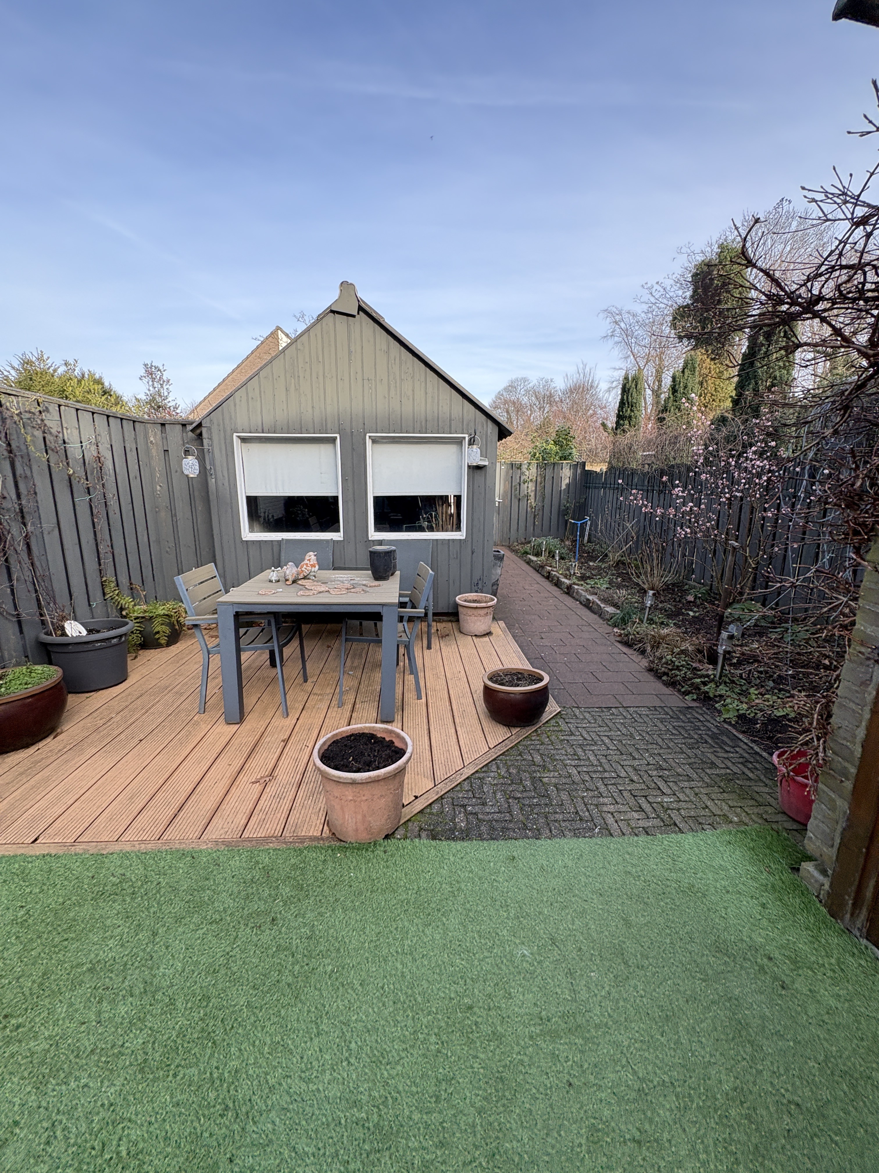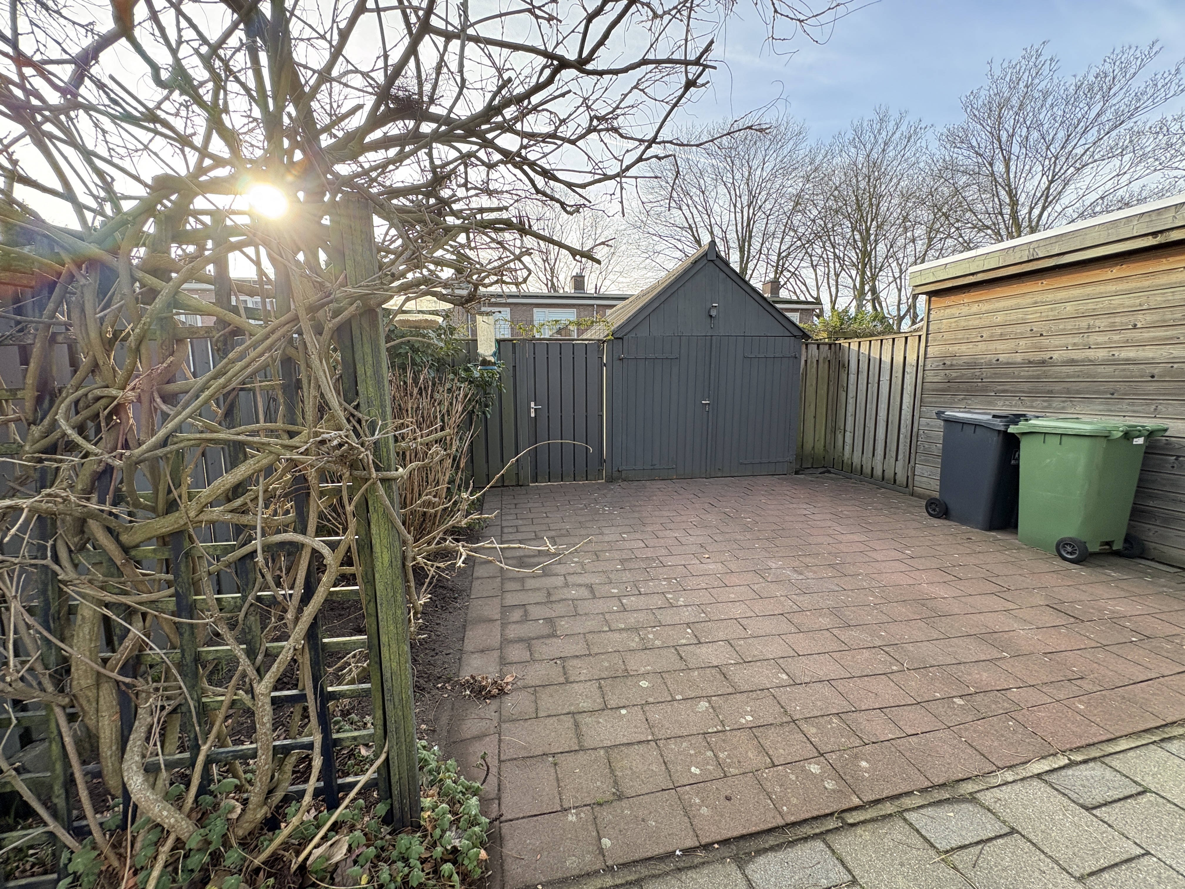 In de tuin een ruime berging. Vele dingen over te nemen van de huidige huurders. Belangrijkste kenmerken op een rij Instapklare woningVeel overnames mogelijkNiet standaard voorzieningen Muurtje op slaapkamerAfwijkende doucheruimteTrapbekleding met verlichtingAfwijkende toiletruimteVloertegels hal en keukenAfwijkende keukenGarageDoor de vertrekkende huurder aangeboden ter overname Inbouwkast voor wasmachine en drogerInbouwapparatuur in keukenLaminaatvloerenKunstgras en vlonder achtertuinBestraatte voortuin met stenen bloembak.