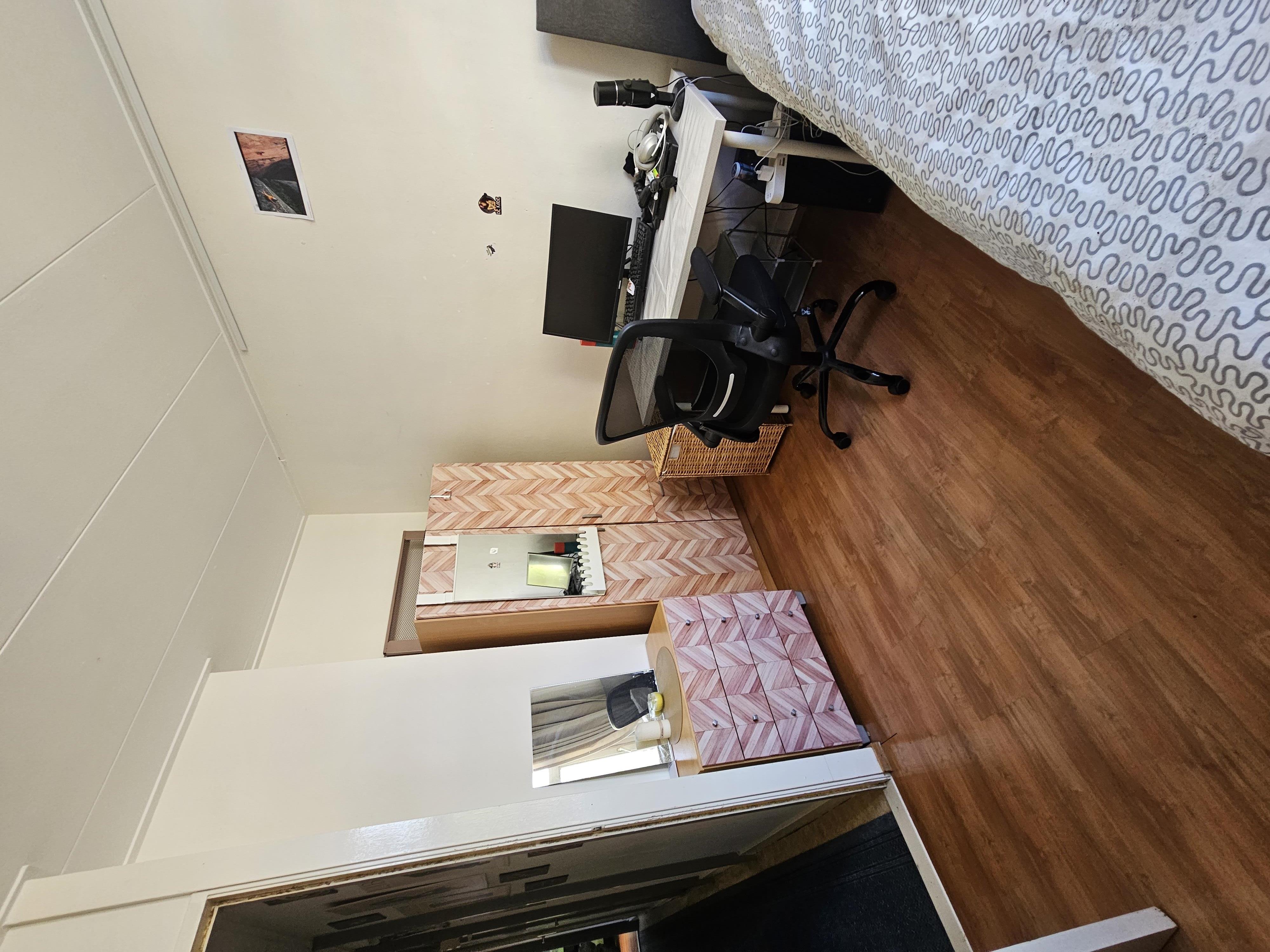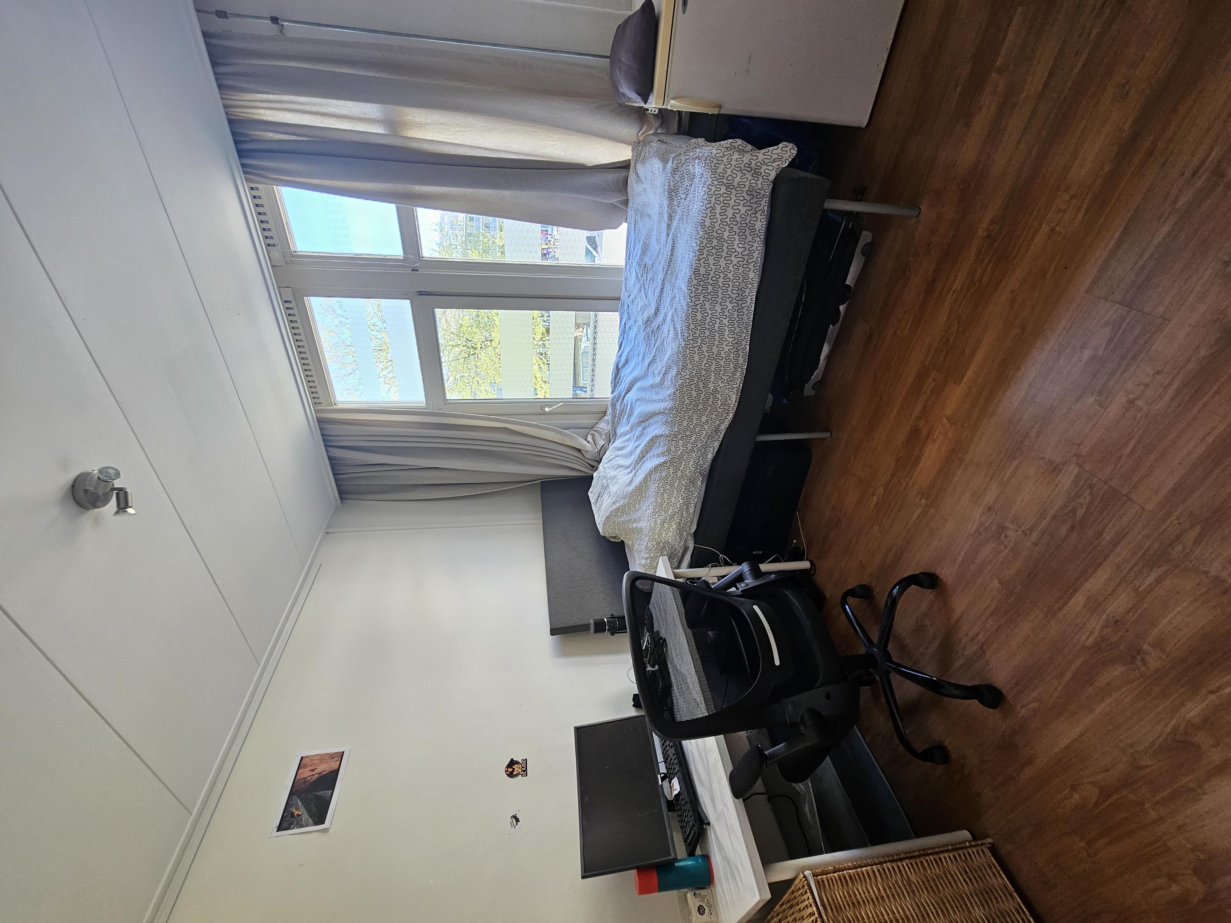 De kamer gemeubileerd,bestaand uit, verhoogt bed met afmeting 120 x 200. Exclusief dekbed, beddengoed, handdoeken. Verder bureau en bureaustoel. Kledingkast met hang/lig ruimte.