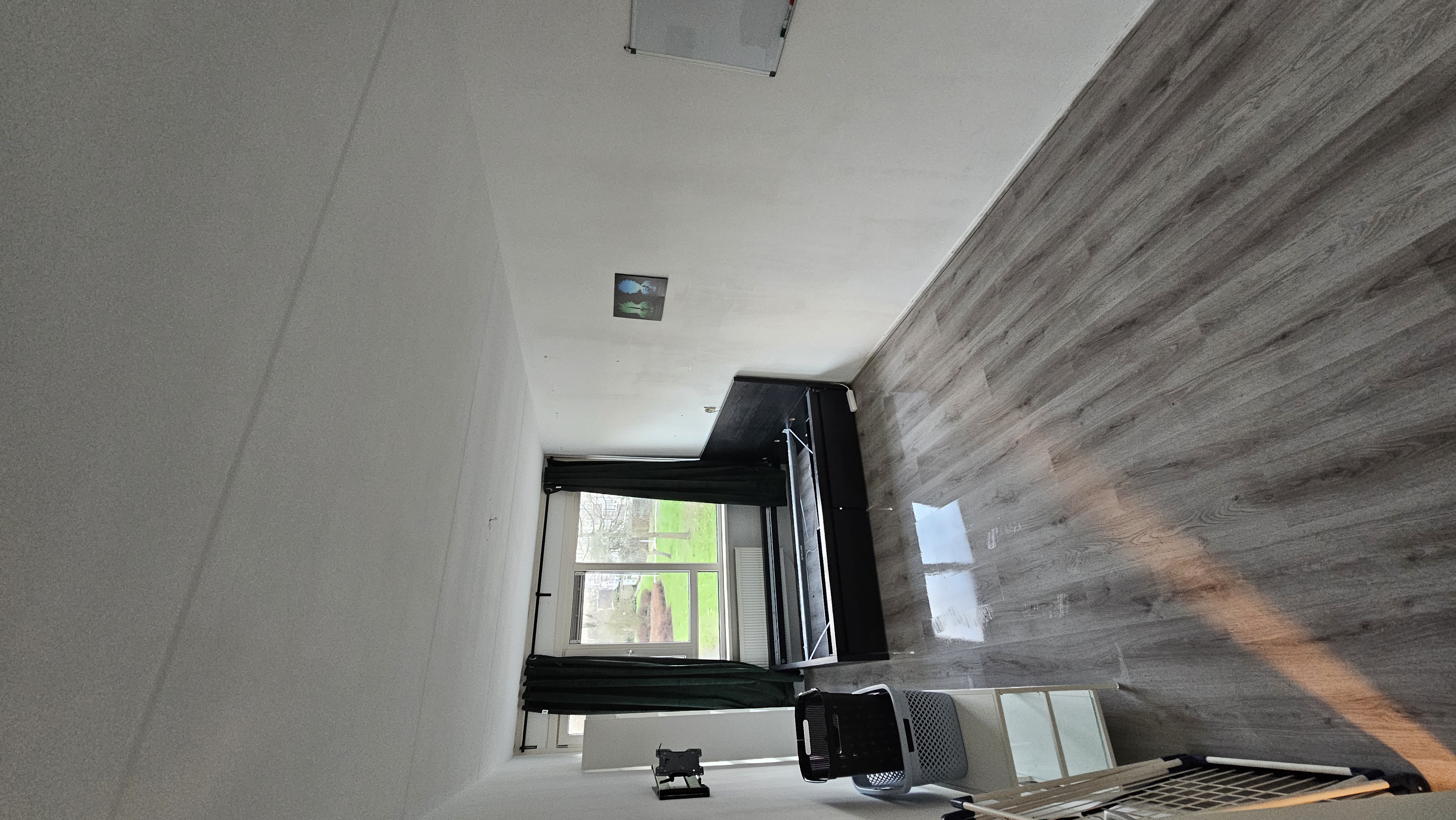 De kamer is vrij groot en ligt naast de keuken. Er is een kledingkast en een bedframe die eventueel overgenomen kunnen worden zonder kosten.