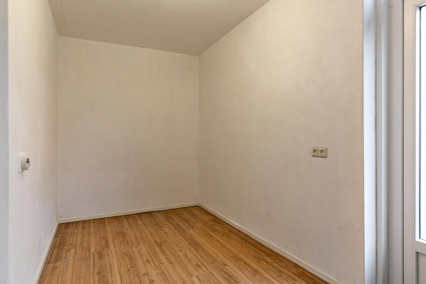Entree/hal, meterkast, slaapkamer (12 m2) met rustig balkon (4 m2) en badkamer met douche en wastafel.
