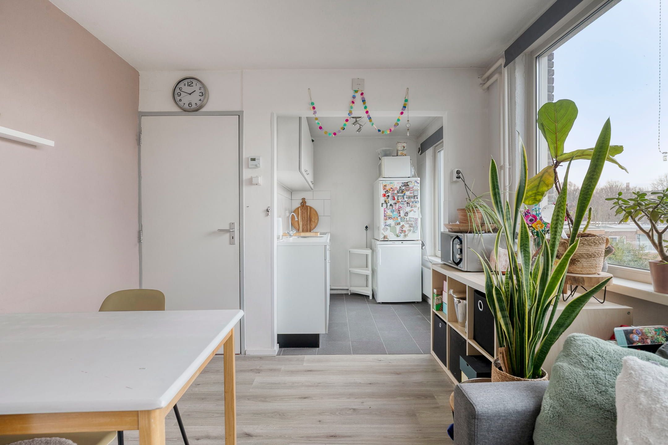 De woning beschikt over een aparte woon-/eetkamer met keuken, wat zorgt voor een duidelijke en praktische indeling.