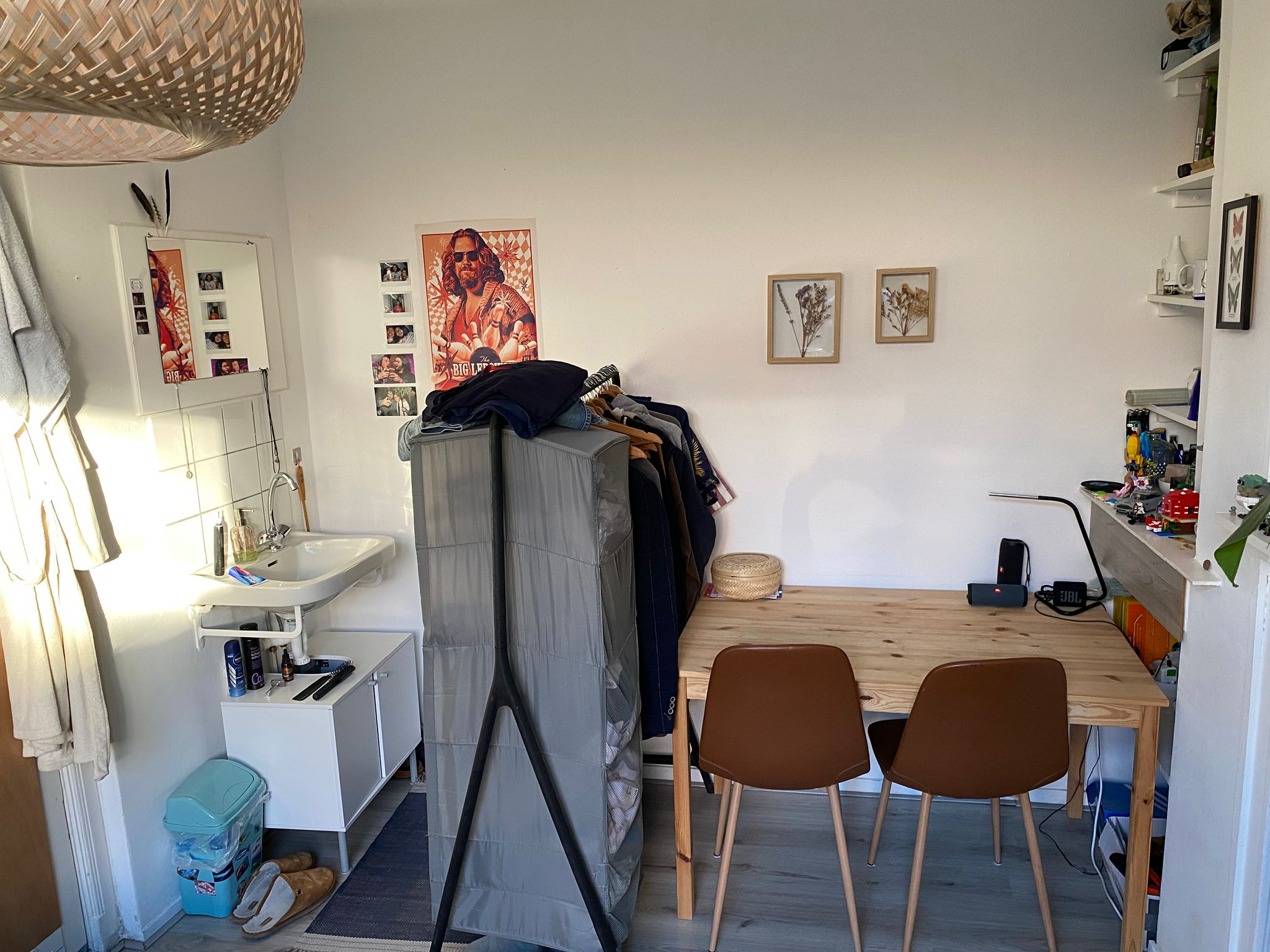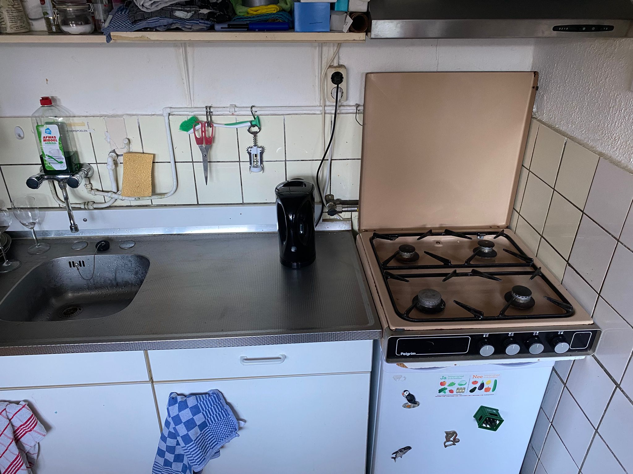 Zoals eerder genoemd deel je de keuken en de badkamer met de andere huisgenoten, maar de koelkast en vriezer deel je maar met 1 huisgenoot. Er is een oven, magnetron, waterkoker en gasfornuis aanwezig.