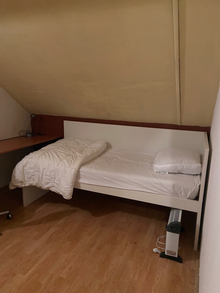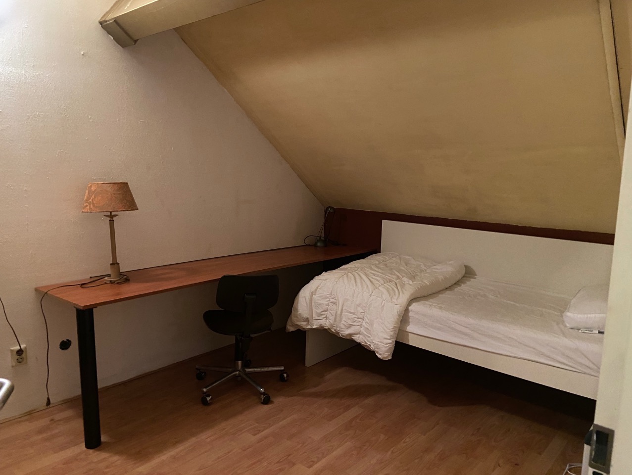 Een ruime zolderkamer in een hoekwoning a/h water.
