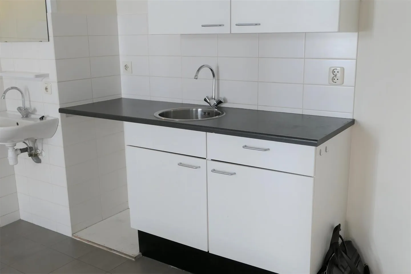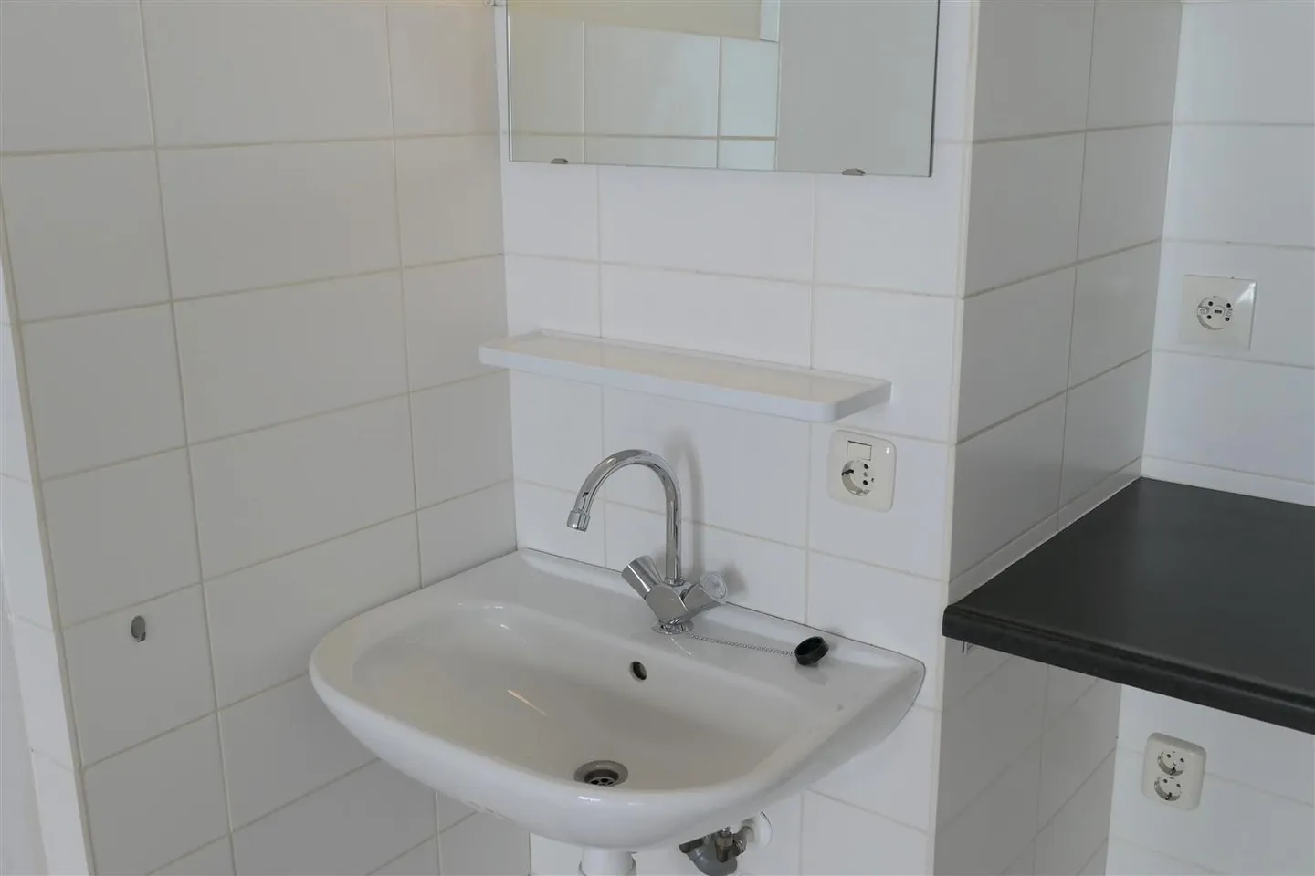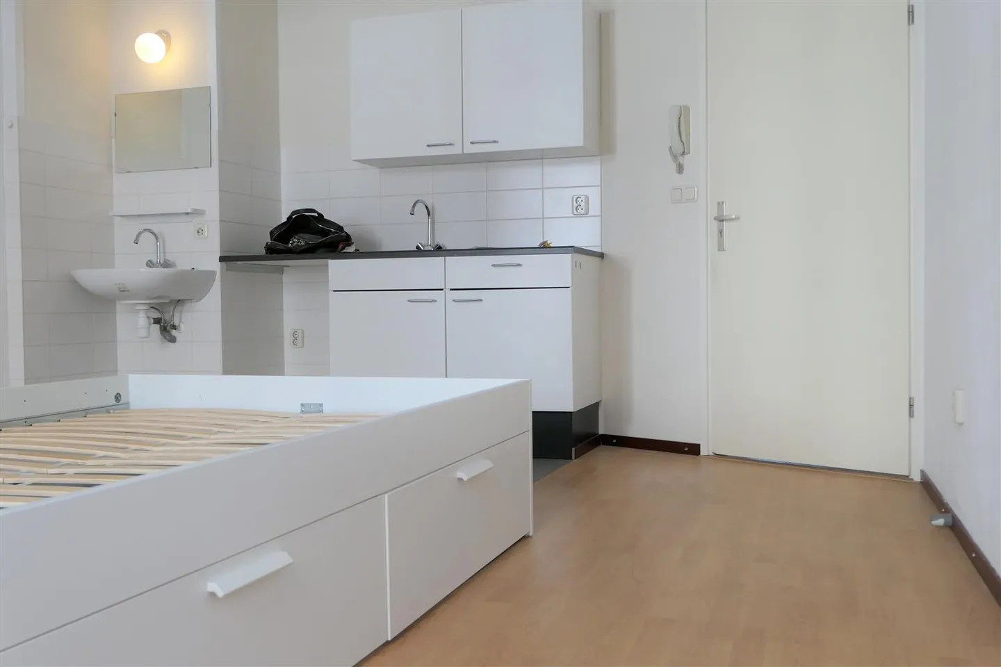 The semi-studio has a bright living- / bedroom with open kitchen and a seperate sink. Shower and toilet are shared with one other tenant.