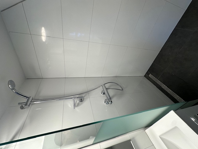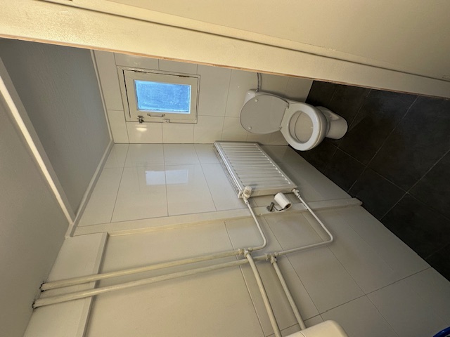 De badkamer is voorzien van een douche, wastafel en wastafelmeubel. Let op er is een gedeeld toilet op de gang.