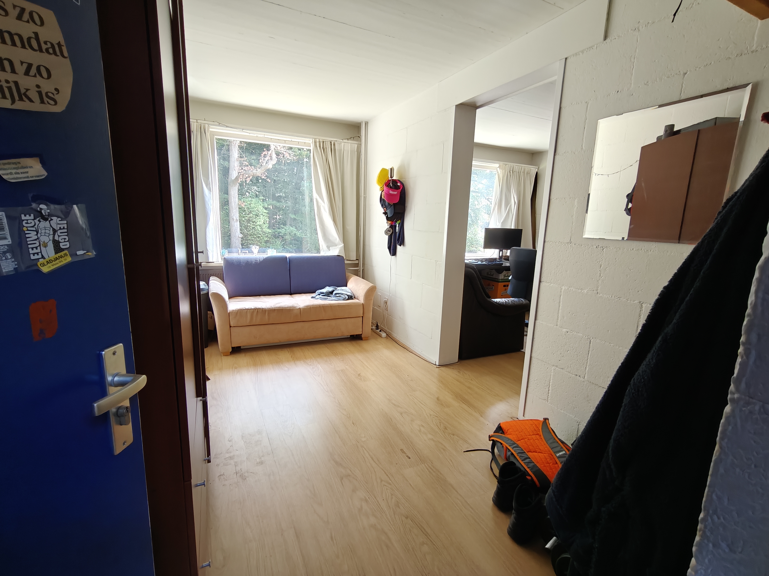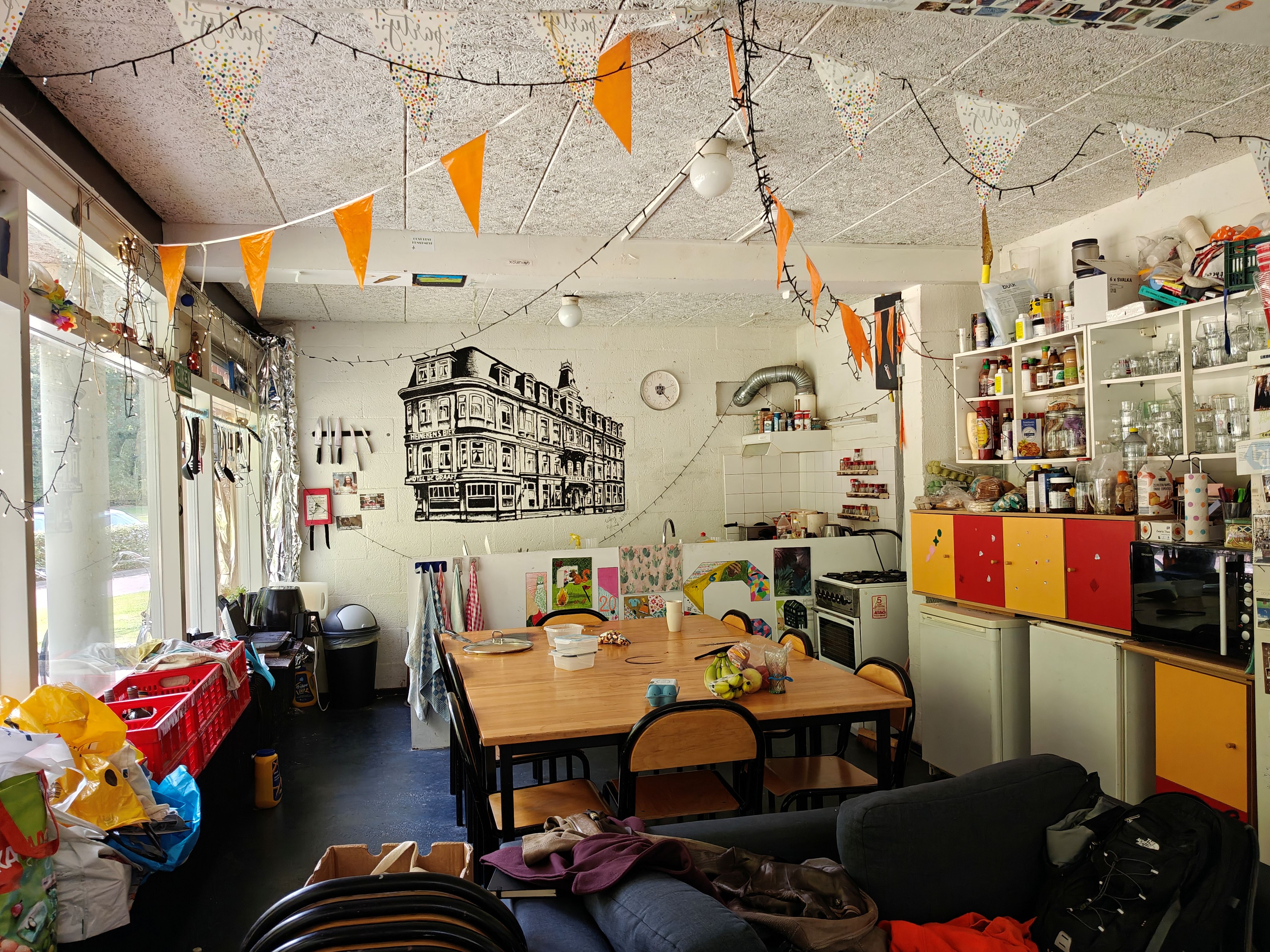 Je komt te wonen in een gemengd huis (nu m/v verhouding 5/4 met in totaal 9 studenten.