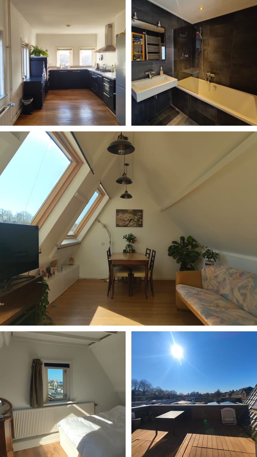 Badkamer, keuken en dakterras deel je met mij. Daarnaast heb je 2 eigen kamers (note, in 1 daarvan staat de gedeelde wasmachine).