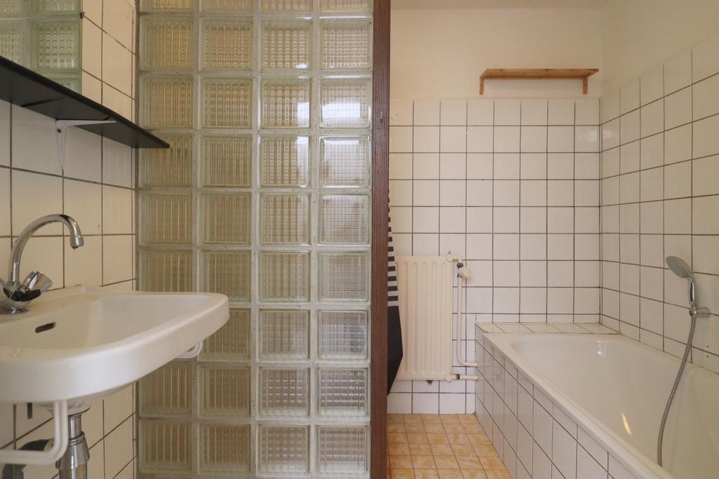 De badkamer is in het midden van de woning gelegen en voorzien van inloopdouche, ligbad en wastafel. Er is een separaat toilet aanwezig. Bijzonderheden: