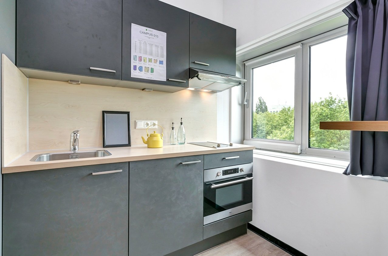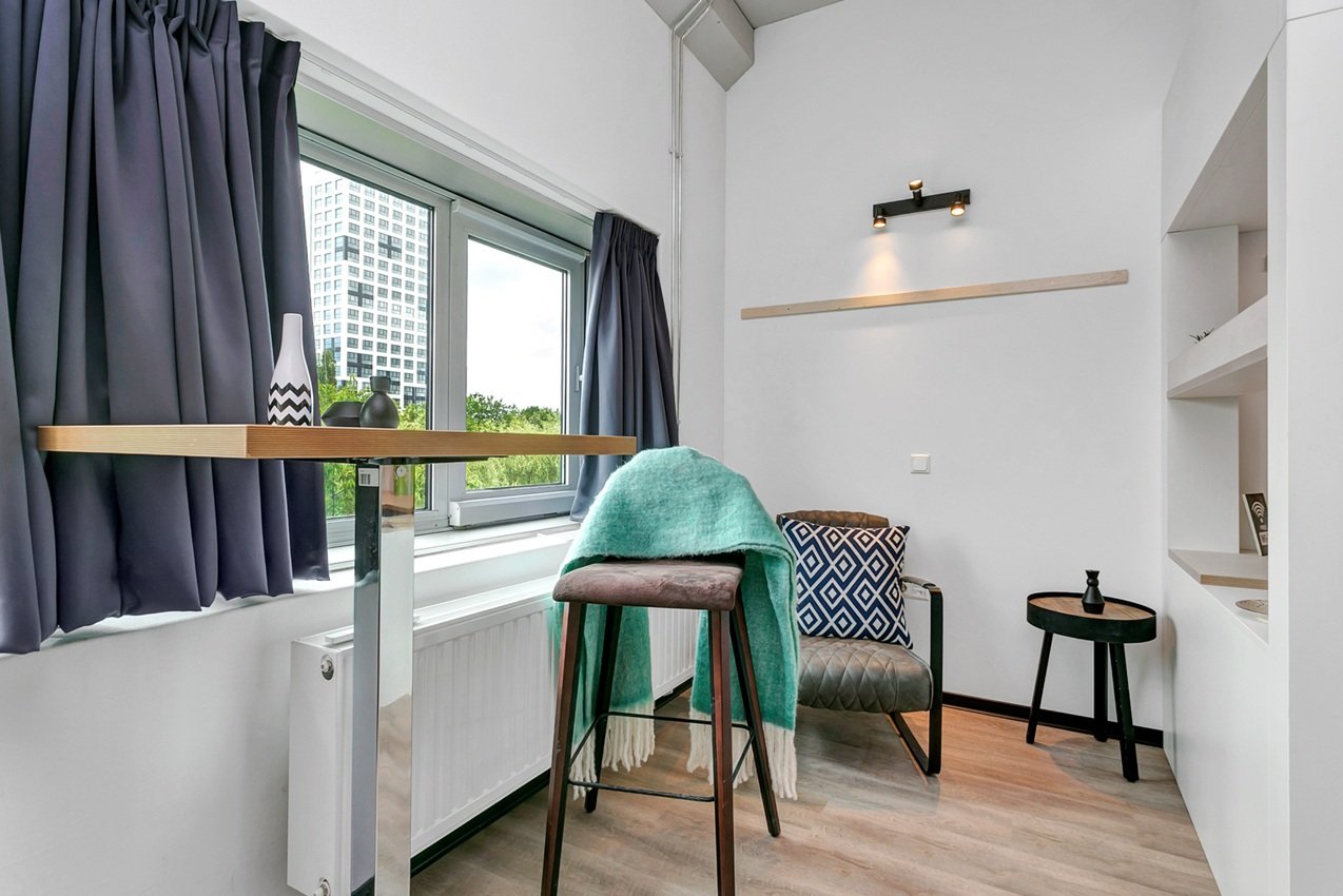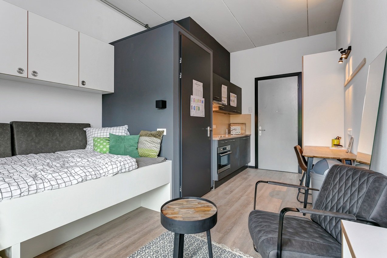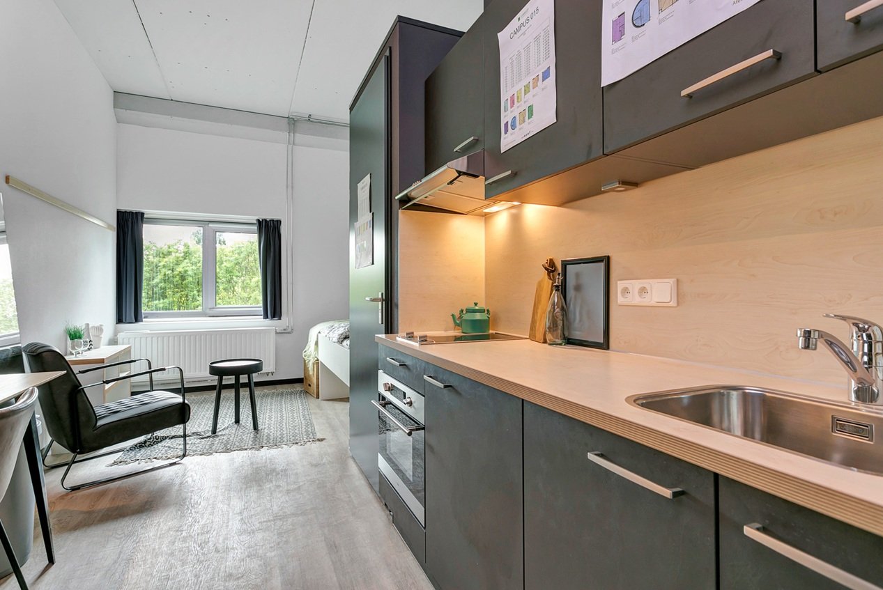 De studio' zijn voorzien van een eigen keuken met koelkast, combi magnetron, kookplaat en afzuigkap. Daarnaast hebben de studio's een eigen badkamer met douche, toilet en wastafel met spiegel. Ook goed om te weten is dat deze locatie vlakbij de campus ligt, ideaal toch?Naast je eigen space, biedt het complex ook gezamenlijke ruimtes waar je kunt studeren, ontspannen of socializen met je huisgenoten door middel van een potje schaken, darten of poolen en een buiten terras met uizicht over het water. Een gemeenschappelijke wasserette is aanwezig en een gemeenschappelijke keuken perfect voor gezamenlijke maaltijden of samen koken. We bieden een onbepaalde tijds contract aan met een minimale huurperiode van 12 maanden voor zowel studenten als werkenden. De vaste huurprijs is inclusief: water, elektriciteit, verwarming en natuurlijk internet. Disclaimer: De getoonde foto's zijn er om jou een goed beeld te geven van de woonruimte, maar hoeven niet altijd specifiek foto's te zijn van het geadverteerde type woning.