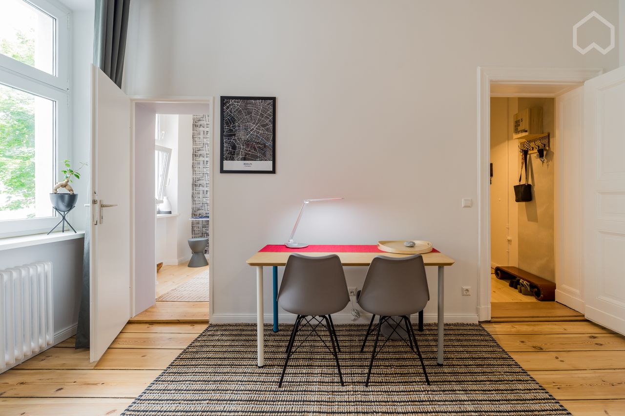 The flat is competely renovated and furnitured. You are the first person to move in. The kitchen has been newly installed and has everything for cooking and making yourself home. All the equipment is completely new.