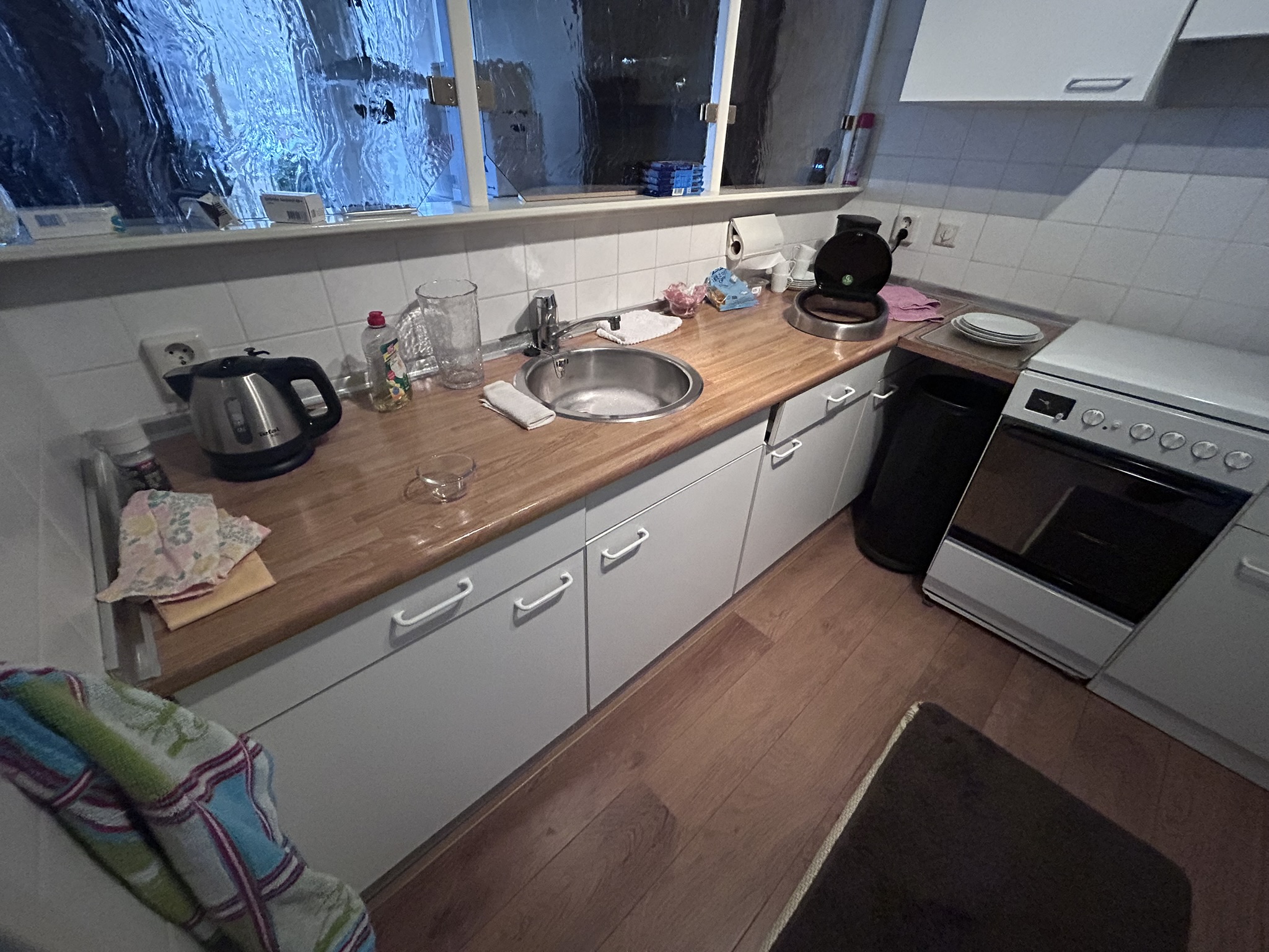 De renovatie zal plaats vinden in bewoonde staat.De bezichtiging zal plaatsvinden (bij akkoord op screening van documenten en inkomenstoets) op 5 maart 2026.Niet standaard voorzieningDe keuken is uitgebreid met een klein hoekje, standaard is dit niet aanwezig, en staat er standaard een recht keukenblok van 2.20 cm lang met 3 onder- en bovenkasten en een blad van 2.20 cm lang.Zaken ter overname (gratis)DouchecabineAfzuigkapGlazen wand tussen keuken en woonkamer.