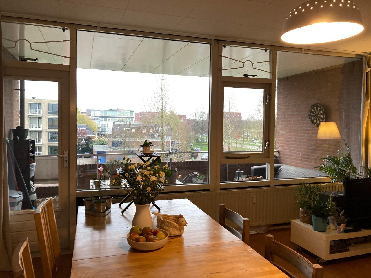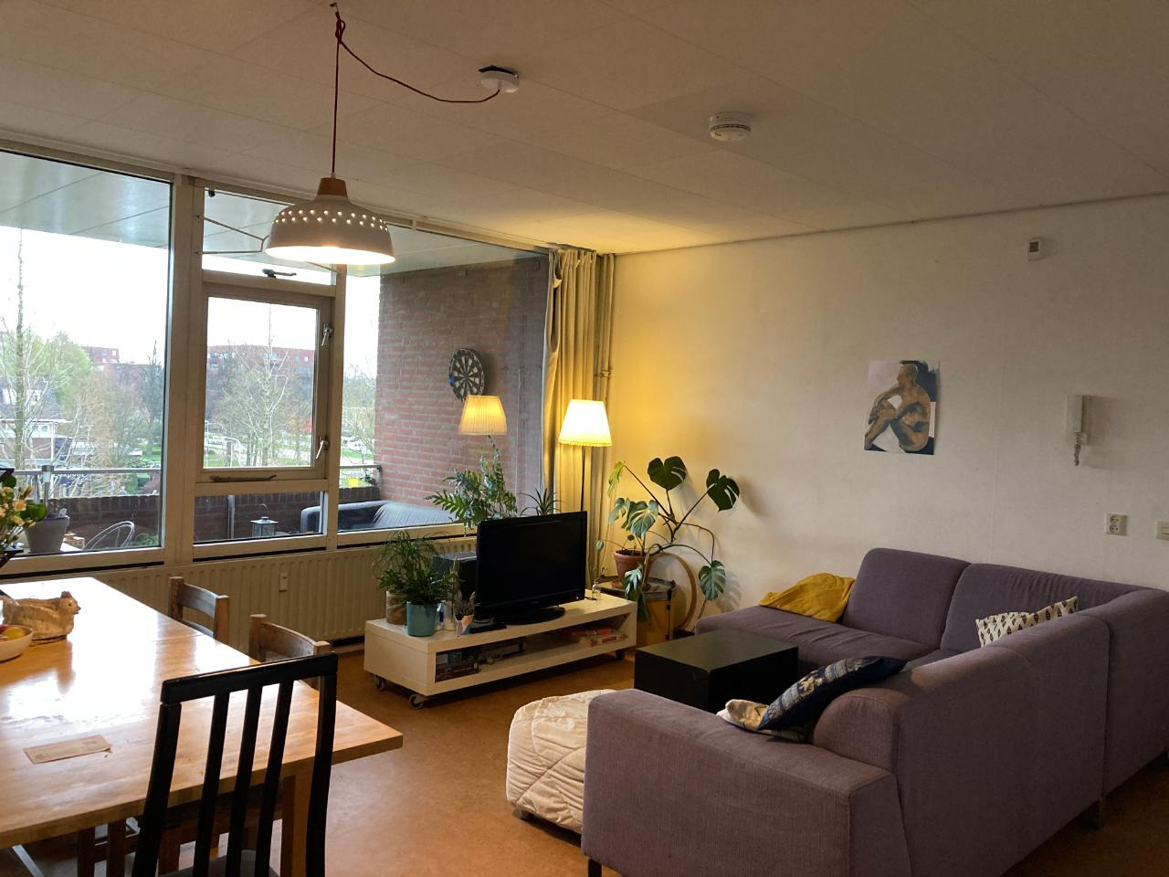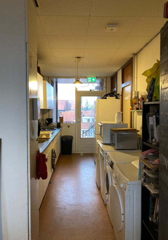 Het is een gezellig huis met een grote gemeenschappelijke woonkamer en keuken (samen 38m2). Wij hebben twee balkons: een groot balkon met ochtendzon (16m2) en een klein balkon met avondzon.