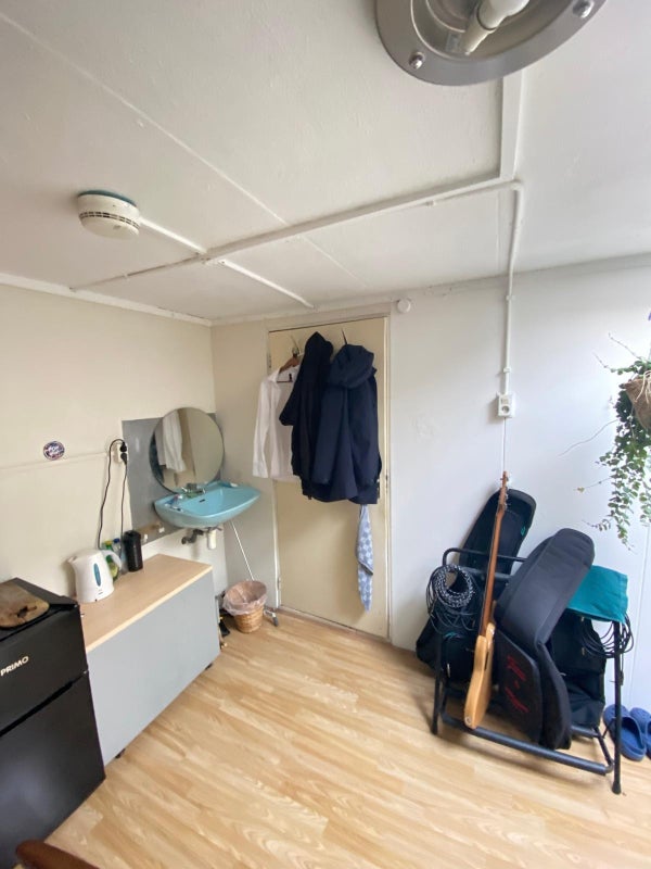 Deze kamer van ca. 13,8 m² bevindt zich op de begane grond van een rustig studentenhuis en beschikt over een eigen wastafel en grote ramen die zorgen voor veel natuurlijk licht.