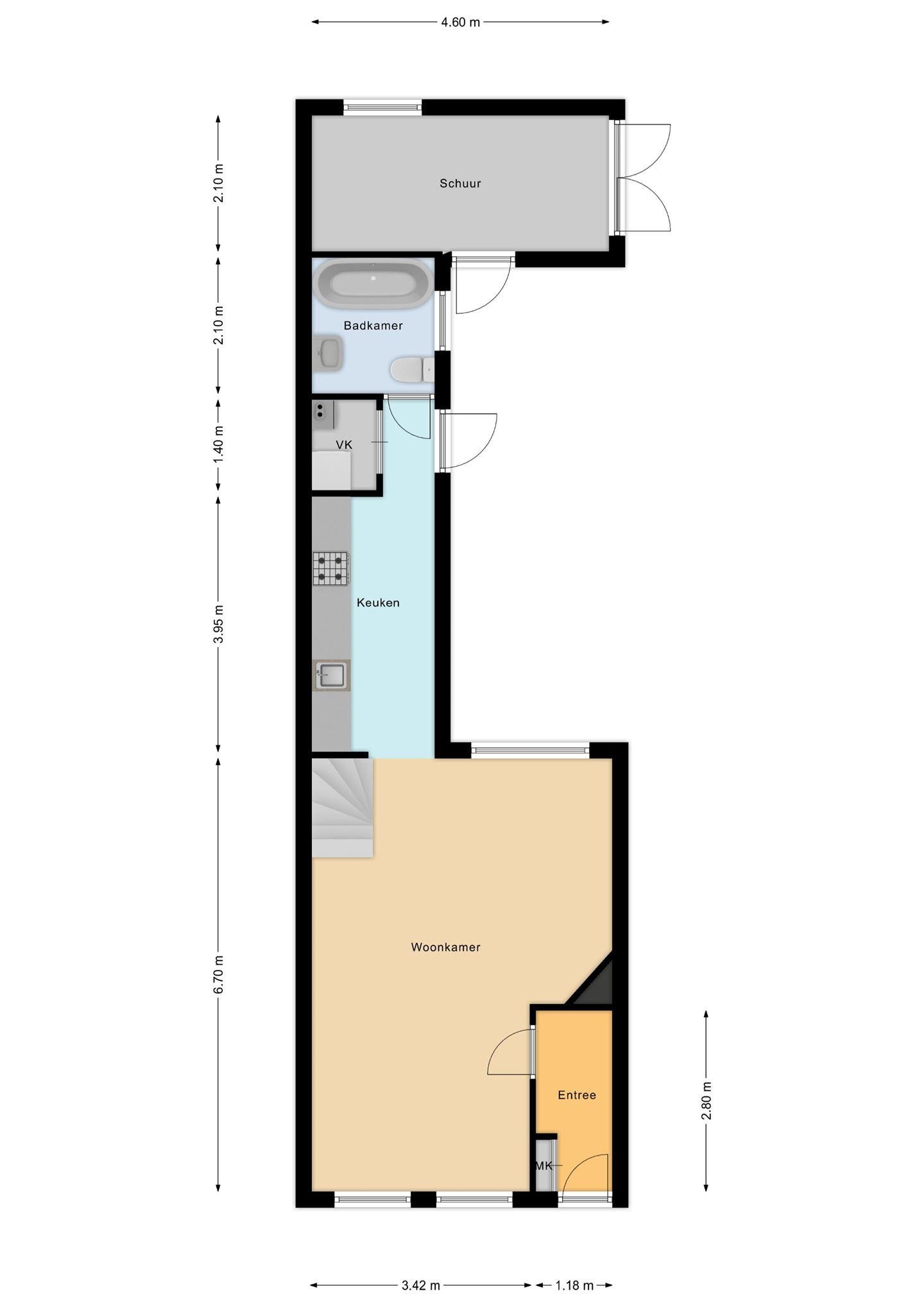 Ideal for first-time buyers in need of extra living space. The kitchen is situated in an extension and features a practical kitchen unit with all necessary appliances, such as a gas stove, extractor hood, refrigerator, and freezer. At the rear of the house is the bathroom, complete with a toilet and bathtub. Stone storage shed and ample parking This property also comes with a handy stone storage shed, perfect for storing bicycles or pursuing your hobby.
