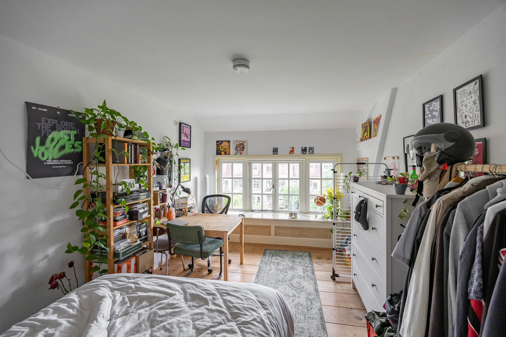 Op de eerste en tweede verdieping liggen de slaapkamers. De badkamer is uitgerust met een douche, wastafel en toilet. In totaal zijn er zes kamers in de woning. De gemeenschappelijke ruimtes worden gedeeld met vijf vrouwelijke bewoners.