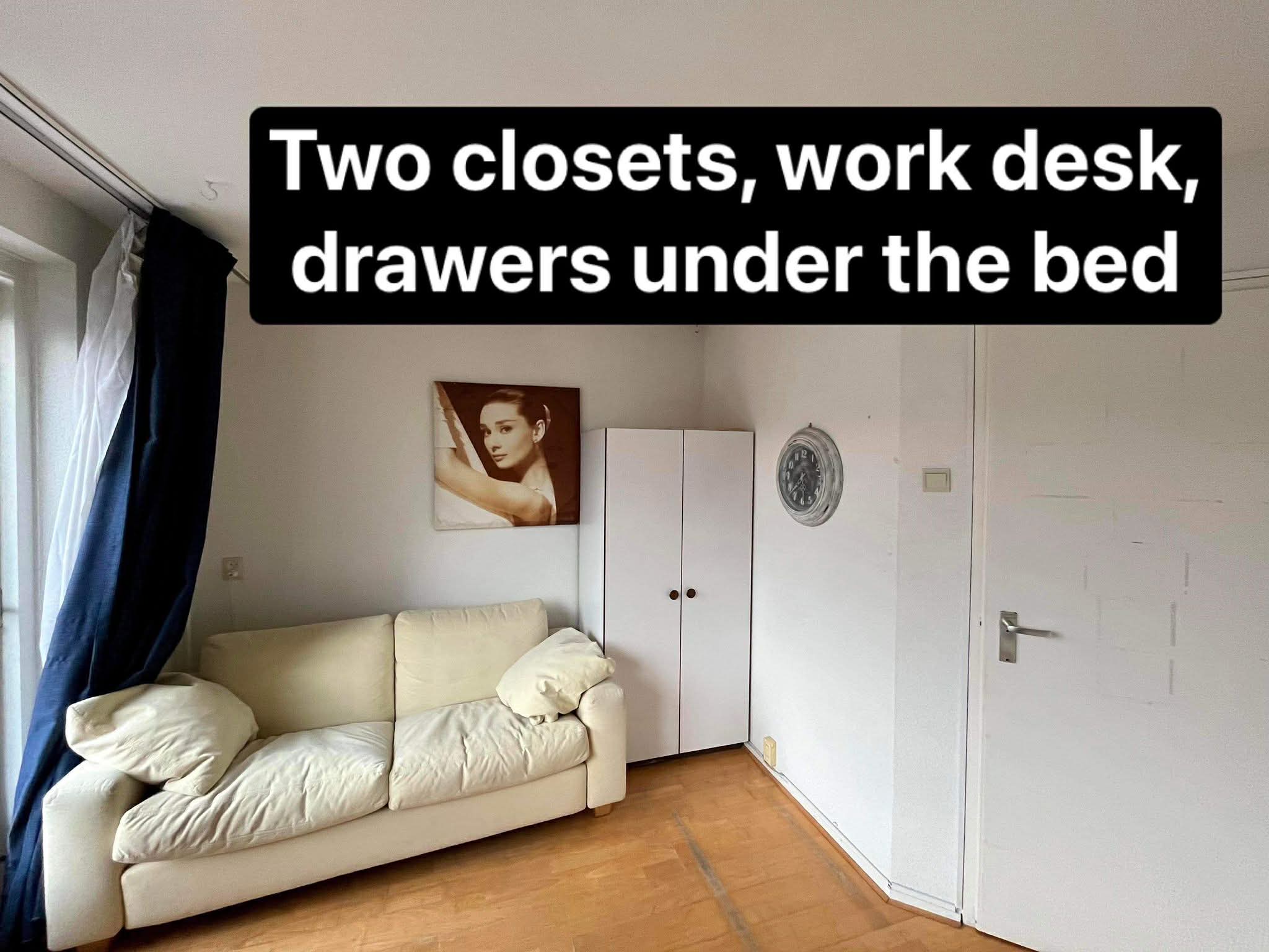 - Gemeubileerd (bed, bureau, 2 kasten)