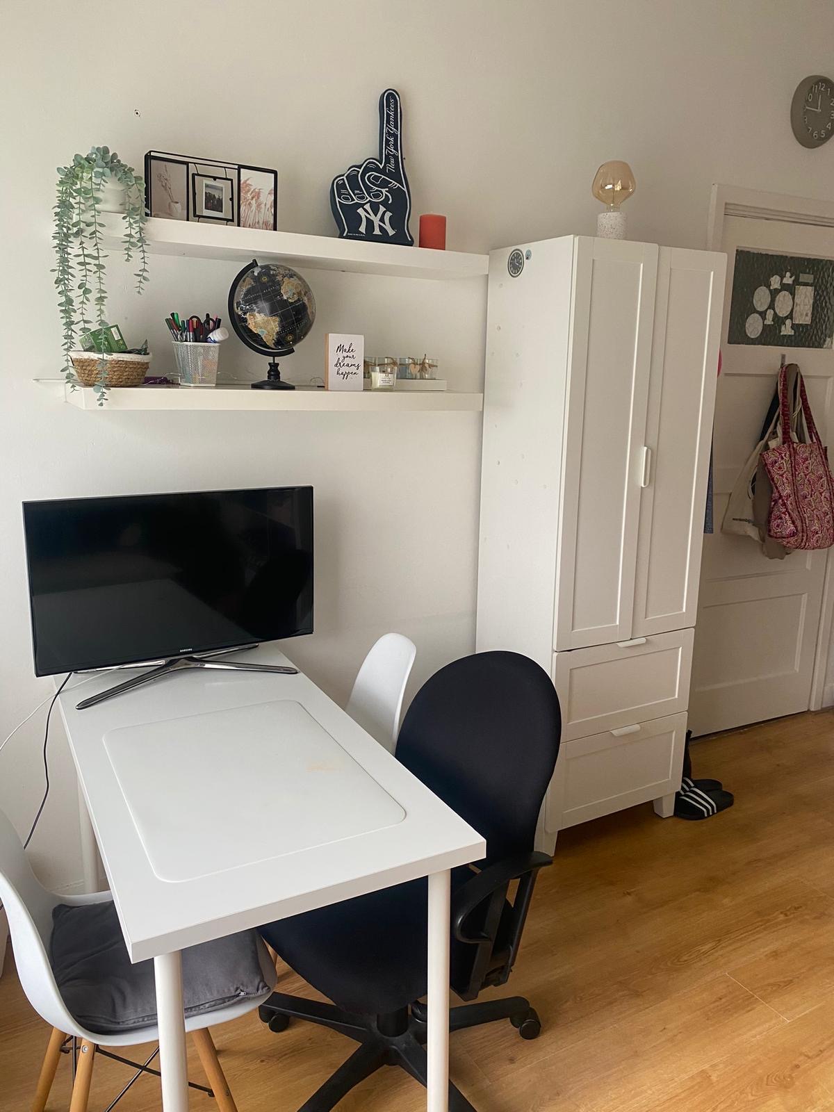 De kamer is ongeveer 16 m2 en heeft veel licht door de grote ramen. Met z'n drieën zullen we de keuken, de badkamer, tuin en een washok/opbergruimte delen. De huur van kamer is €595. Dit is inclusief gas, water, elektriciteit, internet en gemeentelijke belastingen.