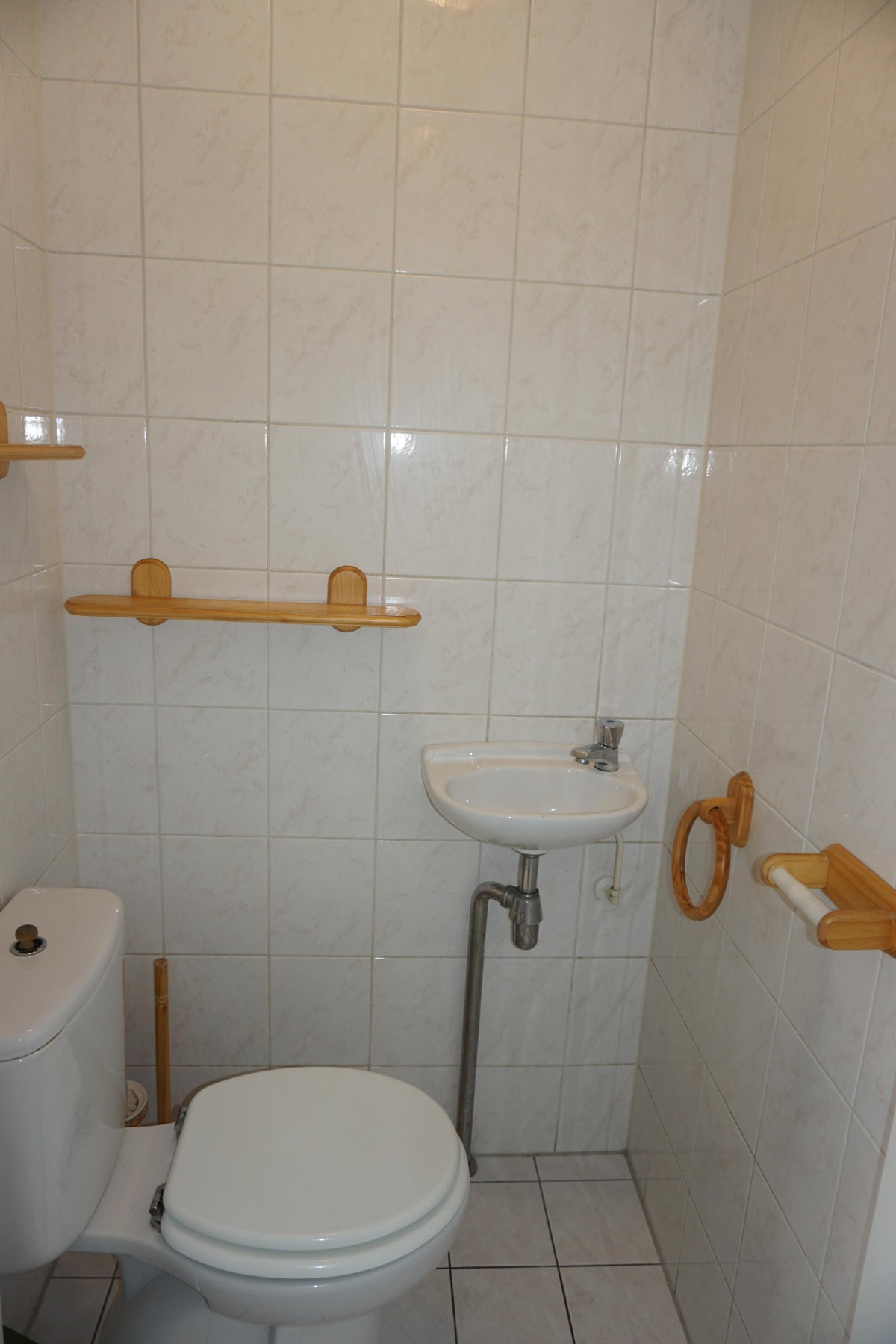 Toiletruimte 1.20 x 0.90 met een duoblok en lichte betegeling.