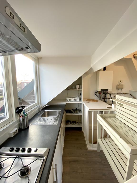 Het bed, voorzien van een nieuw en comfortabel matras, is afgescheiden van het woongedeelte door een ruime kledingkast. De woonkamer is knus en heeft een zeer comfortabele bank, met kussens om lekker in weg te zakken. Er is een separaat eetgedeelte met uitschuifbare eet/werktafel. Handig voor extra bezoek of al je documenten om efficiënt te kunnen werken! Er is een keurige open keuken welke is voorzien van een volledige (1 jr oud) inventaris.