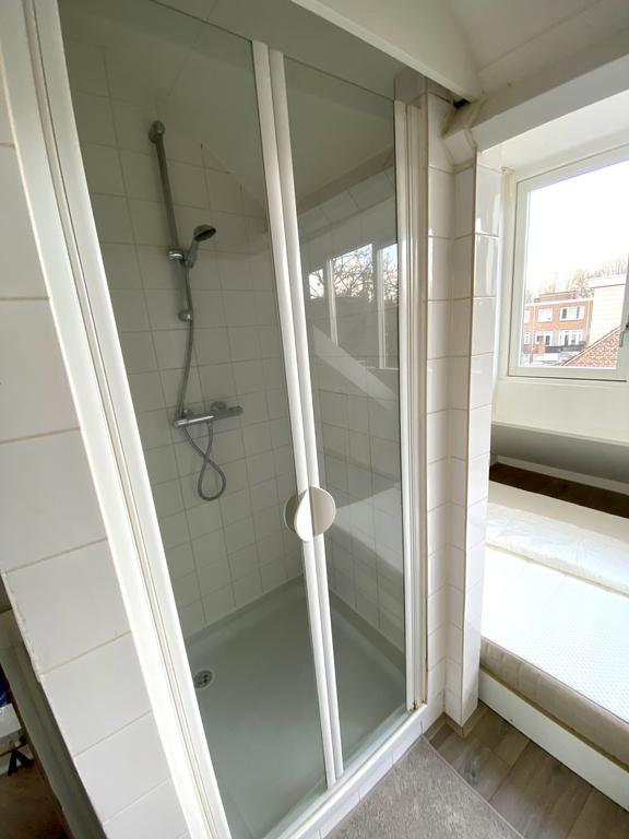 Het toilet is separaat, deze bevindt zich 1 verdieping lager en wordt gedeeld met 2 anderen (dames).