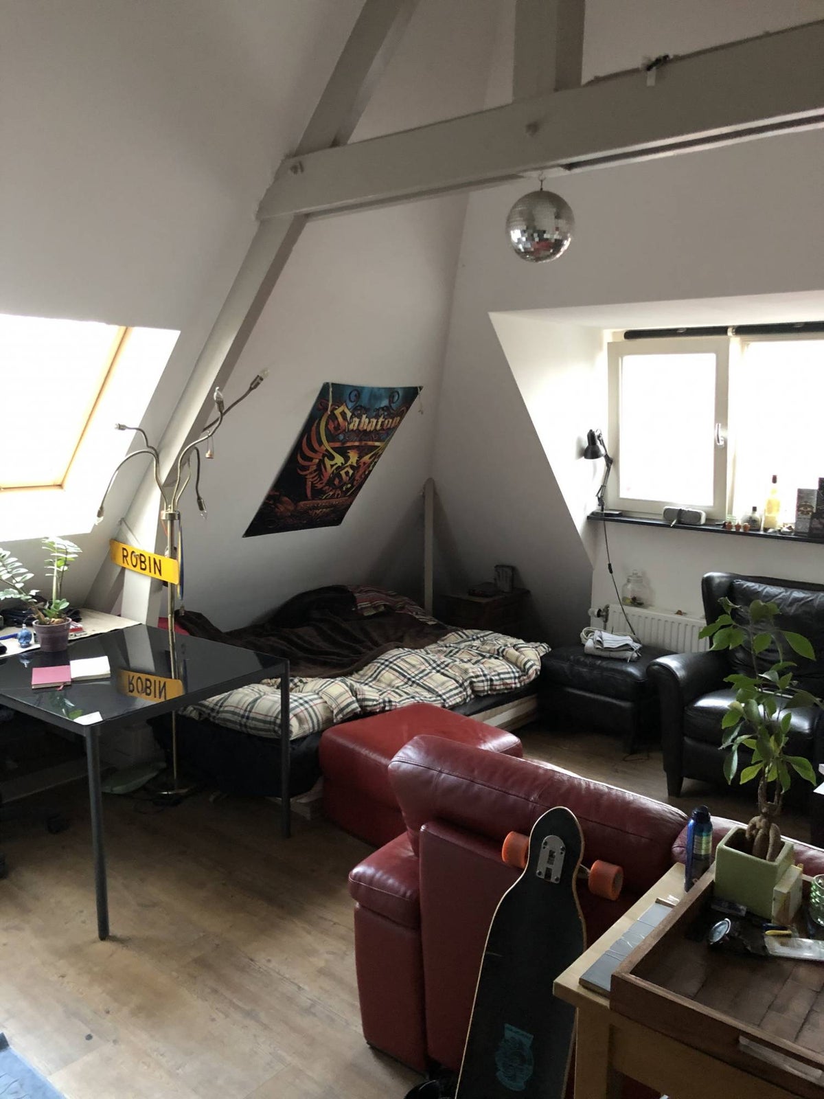 Ruimte: Ongeveer 28 m² met twee dakkapramen die een ruimtelijk gevoel creëren.