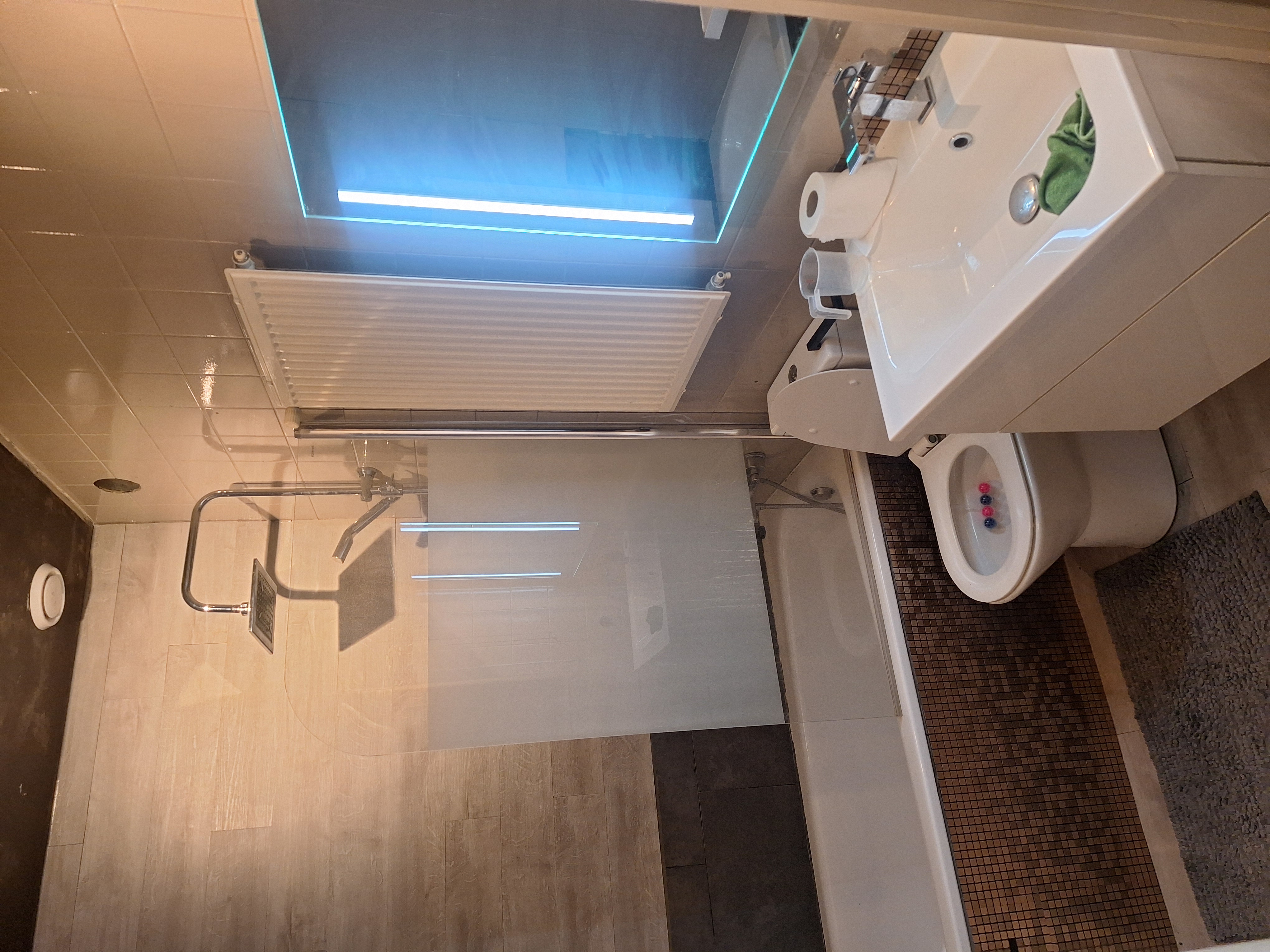 Badkamer gedeeld met wc.
