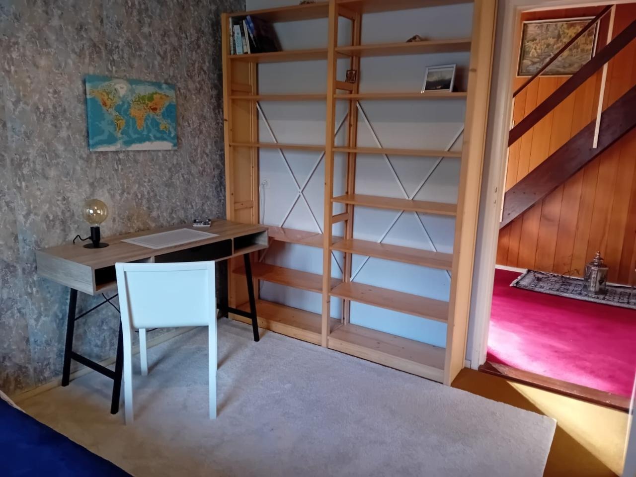 Het huis ligt aan een rustige straat, 10 minuten lopen van het treinstation en de bus, 5 minuten naar cafés, supermarkten Plus.