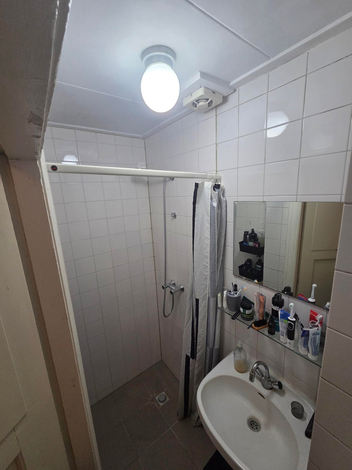 Badkamer en keuken bevinden zich op de zelfde verdieping en worden gedeeld met 1 huisgenoot. Ook hier de keuken met diverse apparatuur.