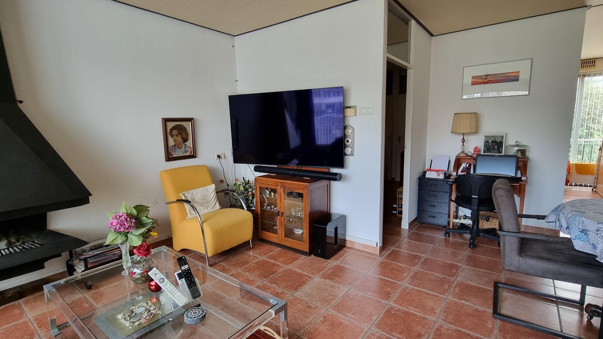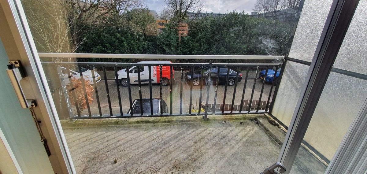 Via de schuifpui is er toegang tot het balkon aan de voorzijde. In de hal bevindt zich een bergkast met CV-opstelling en toegang tot het 1e toilet.