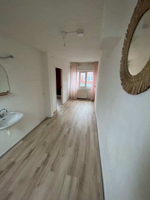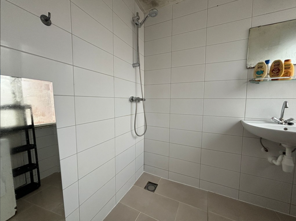 De badkamer is uitgerust met een douche en wastafel. De kamers bevinden zich op de eerste verdieping en hebben beide een oppervlakte van circa 13 m². Daarnaast beschikt de woning over een gemeenschappelijke woonkamer.