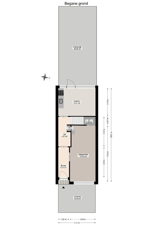 Bij binnenkomst in de woning kom je eerst in de hal, die toegang geeft tot de keuken. De woning heeft een gemeenschappelijke keuken die van alle gemakken is voorzien.