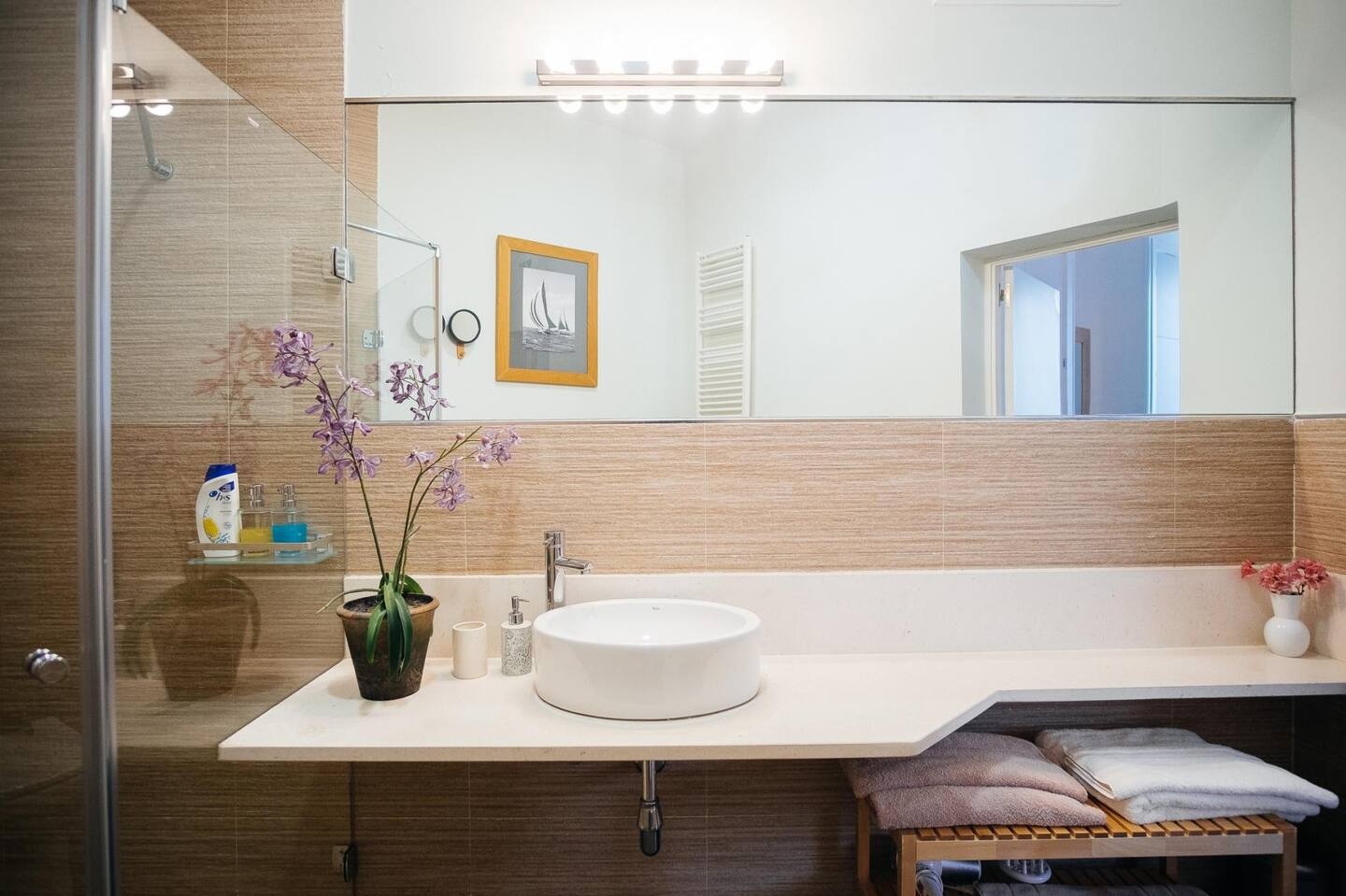 Het balkon is ruim en u kunt er buiten eten..