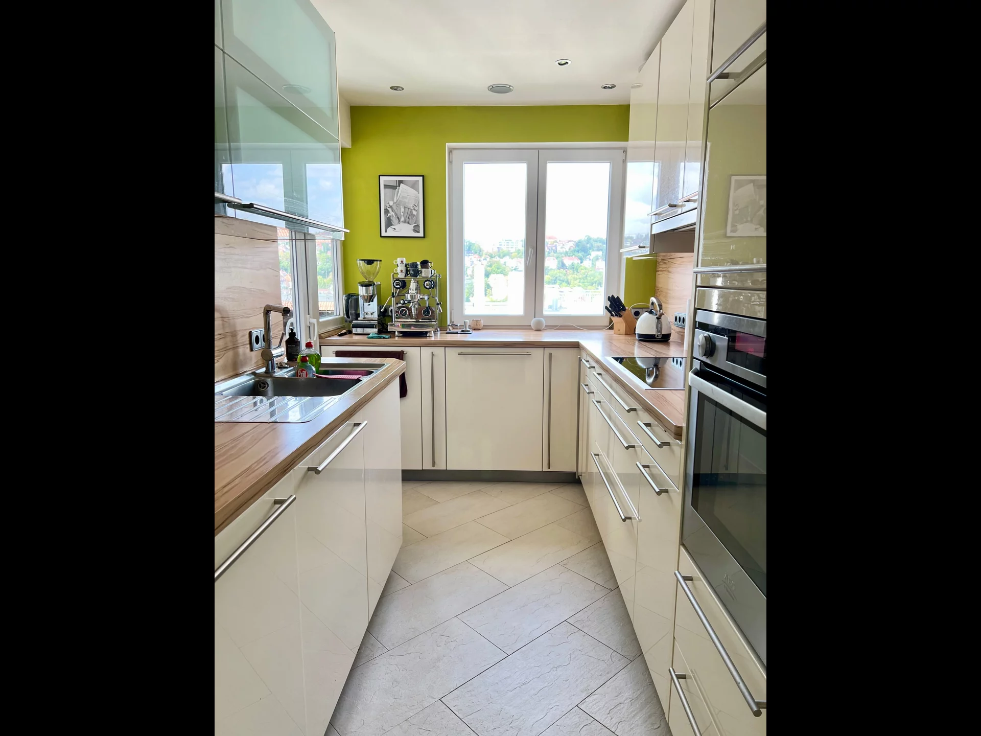 Uiteraard zijn een vaatwasser en een oven aanwezig.