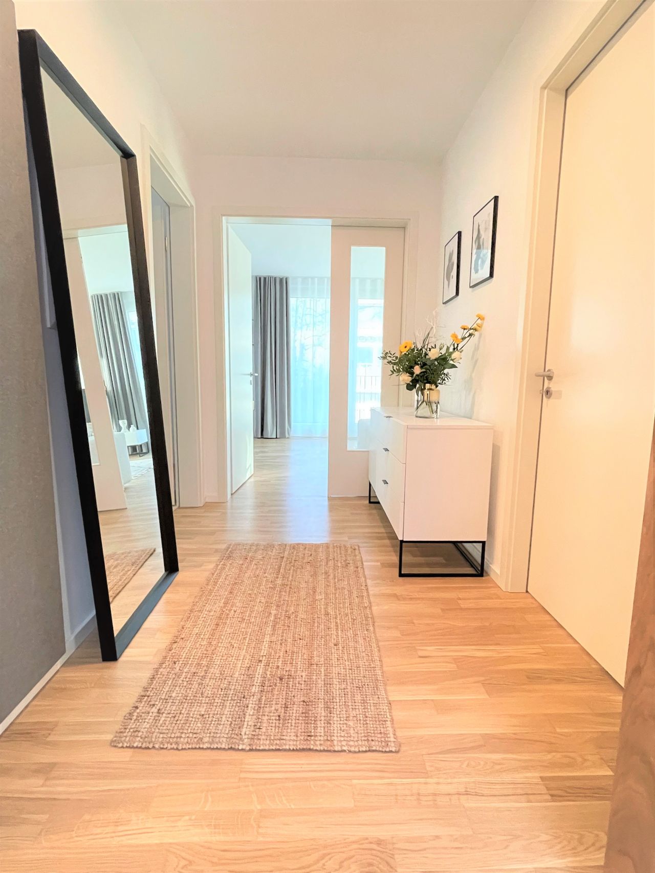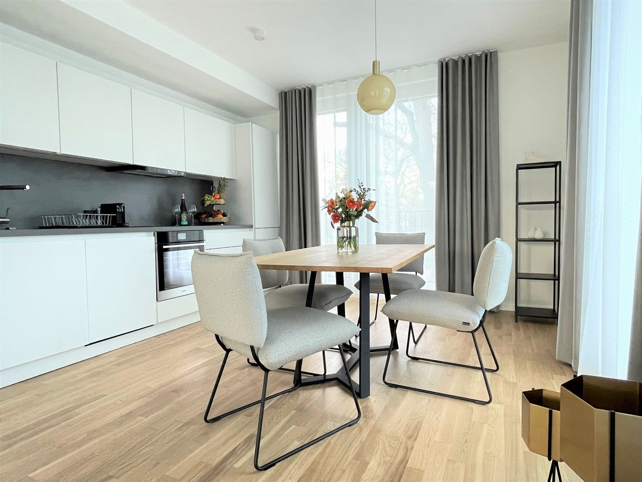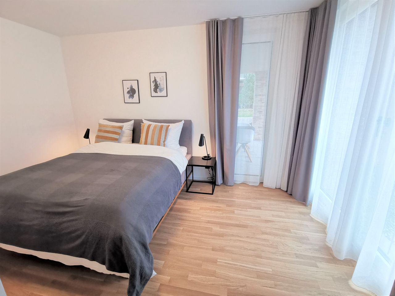 Het appartement heeft 2 kamers, een badkamer en een ruime en volledig uitgeruste keuken, een slaapkamer met een tweepersoonsbed van 180 x 200 cm en een extra berging. Alle kamers hebben geluiddichte ramen van vloer tot plafond van klasse 4 en elektrisch bedienbare externe zonwering..