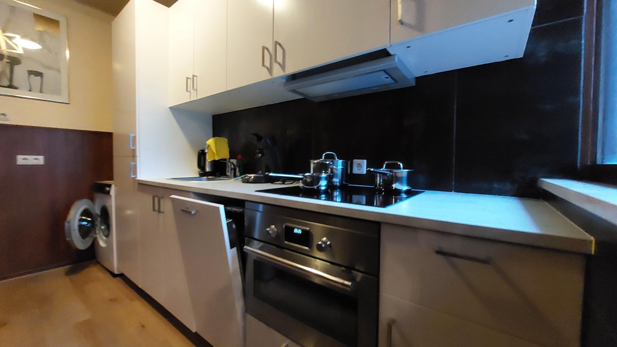 Net keukenblok voorzien van inductiekookplaat, combi oven/magnetron, vaatwasser, koelkast met vriesvak, een afzuigkap, aansluiting voor de wasmachine.