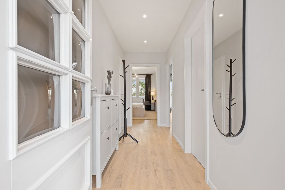 Het hoogwaardig gerenoveerde appartement heeft een uitnodigende woonkamer met een moderne tafel, een comfortabele designbank en een grote tv. Daarnaast biedt het appartement een op maat gemaakte keuken met de nieuwste technologie en de bijbehorende volledige uitrusting (koelkast met geïntegreerd vriesvak, keramische kookplaat, vaatwasser en uitgebreid keukengerei) - niets staat een diner voor twee in de weg! Daarnaast nodigt het prachtig gelegen balkon uit om heerlijk te ontspannen en te genieten van de zonuren..