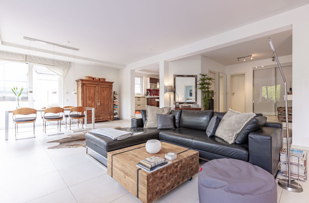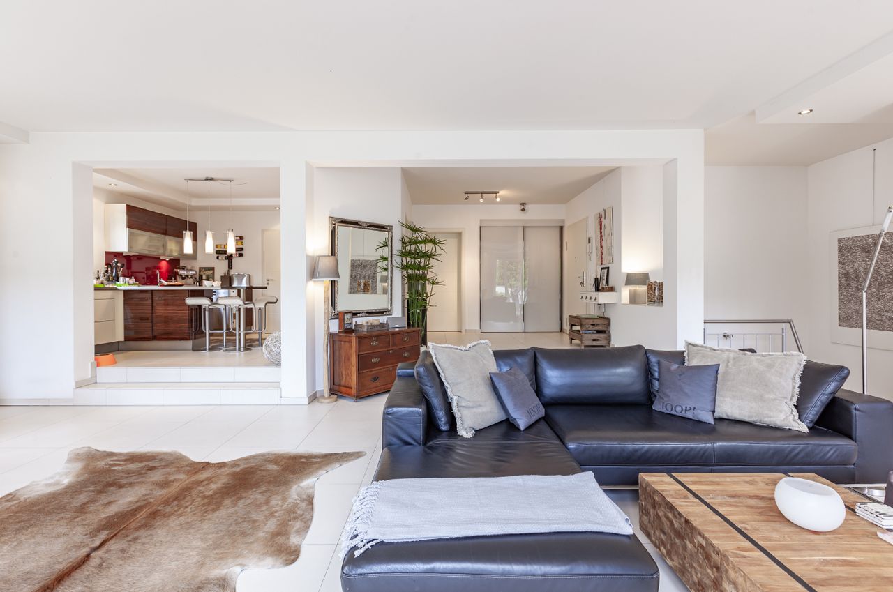Het lichte, stijlvolle en zeer hoogwaardig gemeubileerde appartement heeft een woonoppervlak van ca. 160 m2 verdeeld over 2 woonlagen, 2 ruime slaapkamers en een woon/eet/keuken oppervlakte van 100 m2. De betoverende tuin strekt zich uit over 2 niveaus en heeft verschillende zitjes die uitnodigen tot verpozen. Het Weber-grillstation biedt ook culinaire en sociale avonden, chillen in de tuin op warme zomeravonden.